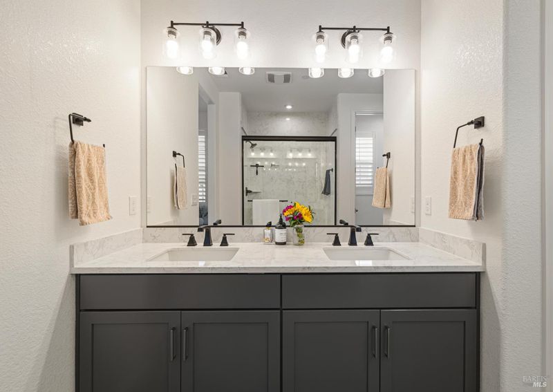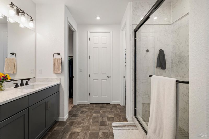 - Closet, Double Sinks, Marble, Shower Stall(s), Walk-In Closet, Window