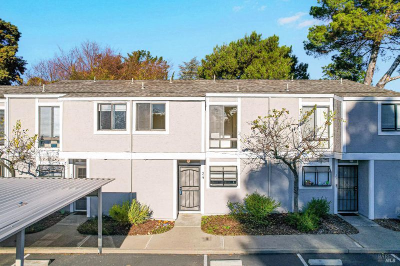 This charming move-in ready condo offers in-unit laundry, efficient wall heating and cooling, and access to a community pool. Step inside a light-filled entry featuring a half bath and laundry area. The kitchen showcases stained wood cabinets, an electric range and oven, a garden window, and a breakfast bar perfect for morning coffee. The open living room is spacious and bright with recessed lighting, desk nook, and a sliding glass doors leading to the patio with a large exterior storage closet. Upstairs, the primary bedroom includes a roomy walk-in closet and a dramatic floor-to-ceiling window. Two additional bedrooms and a hallway bathroom with dual sinks and a shower-tub combo complete the layout. Conveniently located just minutes from Raley's shopping plaza, restaurants, highly rated K-12 schools, and easy freeway access- this home combines comfort, convenience, and lifestyle appeal.