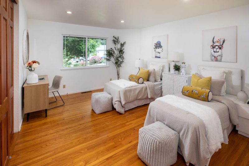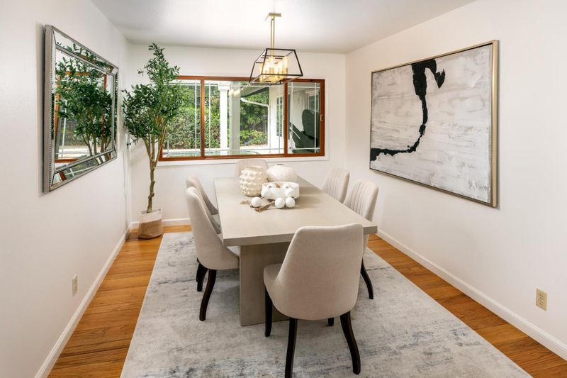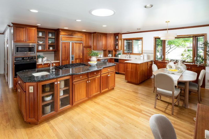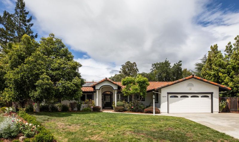 Welcome to this beautifully expanded and updated single-level residence in Saratoga's prestigious Golden Triangle, renowned for its top-rated schools and prime location. Offering 4 bedrooms plus a versatile den (optional 5th bedroom), 3 bathrooms. This home combines comfort, functionality, and timeless appeal. A significant 2004 renovation thoughtfully enhanced the home, expanding the primary suite, adding a flexible den, and extending the front of the home to enlarge the kitchen, garage, and front bedrooms creating a more open and practical layout. Designed for both everyday living and entertaining, the home features multiple living spaces including formal living and dining rooms, as well as a warm and inviting family room with vaulted ceilings. Large windows and Andersen sliding doors provide abundant natural light and seamless indoor-outdoor flow to the backyard and sparkling pool. The spacious kitchen is equipped with a built-in Sub-Zero refrigerator, ample cabinetry, and generous prep space ideal for any home chef. Recent updates include refinished hardwood floors, fresh interior/exterior paint, and modern lighting. Additional highlights include owned solar, tankless water heater, upgraded plumbing, smart home features, and seismic upgrades.