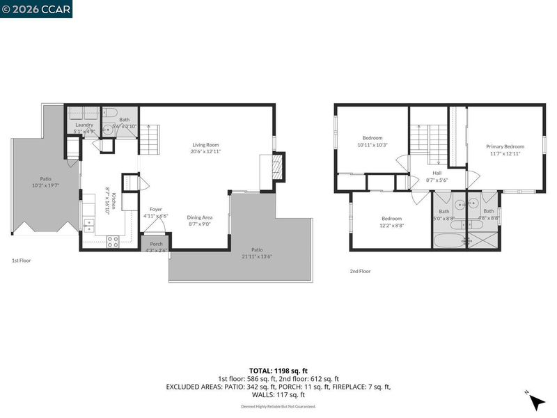 - 2 Bedrooms, 1 Bath, Primary Bedrm Suite - 1