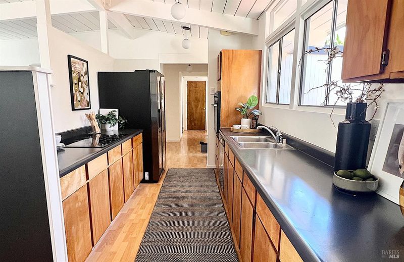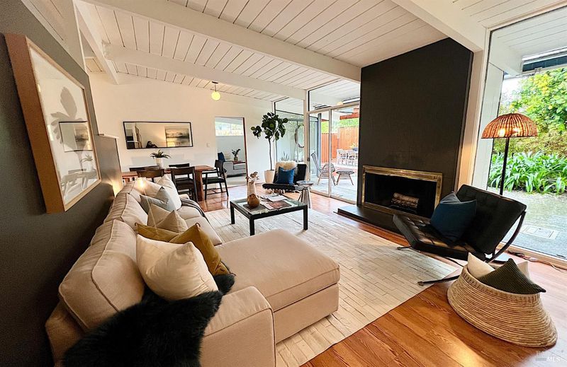 This stylish Terra Linda Eichler captures the essence of mid-century indoor-outdoor living, centered around a private courtyard that extends the living space and invites year-round lounging, dining, and gardening. Clean lines, a freshly painted interior, and abundant natural light create a relaxed, easy atmosphere throughout. The open-concept living and dining area features a fireplace and a wall of glass framing the courtyardan iconic Eichler design. The kitchen opens to the main living space, ideal for both everyday living and entertaining. The primary suite offers a peaceful retreat with comfort, privacy, and direct access to outdoor spaces on both sides. Two additional bedrooms are conveniently located near the hall bath and laundry area. A versatile room off the main living space complete with new carpet, a closet, and direct courtyard access offers flexible options for use as a family room, fourth bedroom, guest space, or home office. Additional features include a spacious two-car garage with direct interior access, refreshed exterior trim, newly painted walkways, and updated landscaping. Just minutes from top-rated schools, shopping, dining, Scotty's Market, outdoor activities, Terra Linda Community Center and Pool, and easy access to Highway 101. This home offers convenience and a strong sense of community.