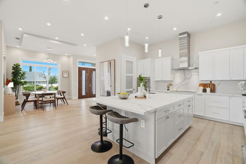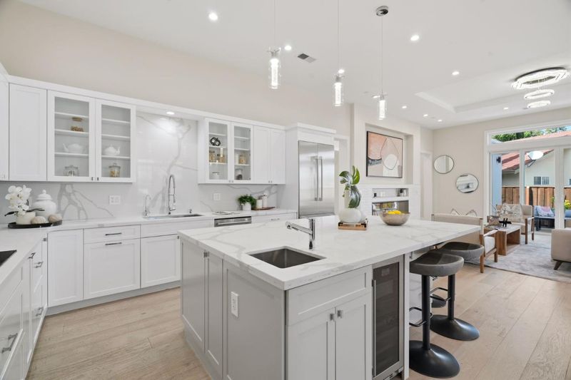 - Countertop - Quartz, Dishwasher, Freezer, Garbage Disposal, Hood Over Range, Island with Sink, Microwave, Pantry, Refrigerator, Wine Refrigerator
