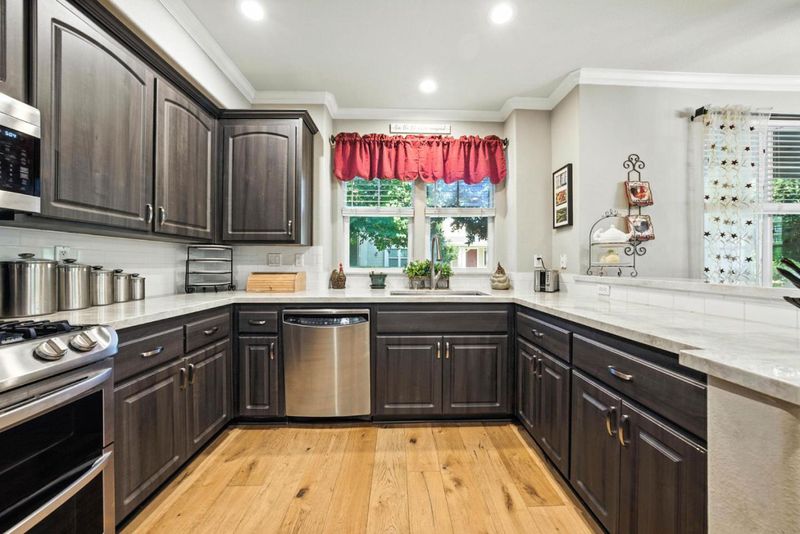 - Countertop - Granite, Dishwasher, Garbage Disposal, Hood Over Range, Microwave, Oven Range - Gas