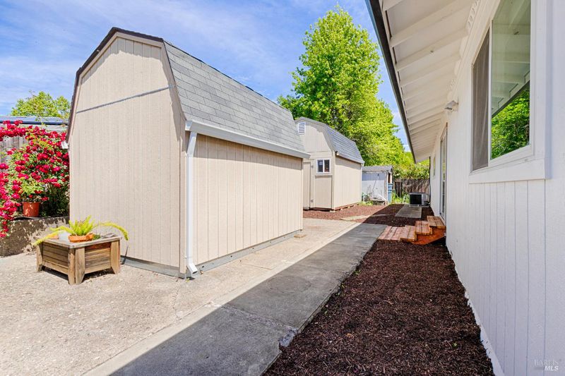 Beautifully updated single-level Rincon Valley home with a functional open floor plan and abundant natural light. The combined living, dining, and kitchen area is enhanced by a centrally located skylight, creating a bright and comfortable main living space. Bathrooms have been updated within the past two years. New roof in 2025, plus tankless water heater and air conditioning for year-round comfort. Situated on a large 8,000 sq.ft. lot, the backyard offers a patio area for indoor-outdoor living, raised garden beds, and three large storage sheds providing ample space for tools and equipment. Side yard includes additional parking suitable for a small boat or vehicle, along with an electric vehicle charger. Converted garage provides flexible studio or ADU potential (buyer to verify permits and intended use). Conveniently located near Tanglewood Park, Oliver's Market, and well-regarded Rincon Valley schools, with easy access to shopping and everyday amenities.