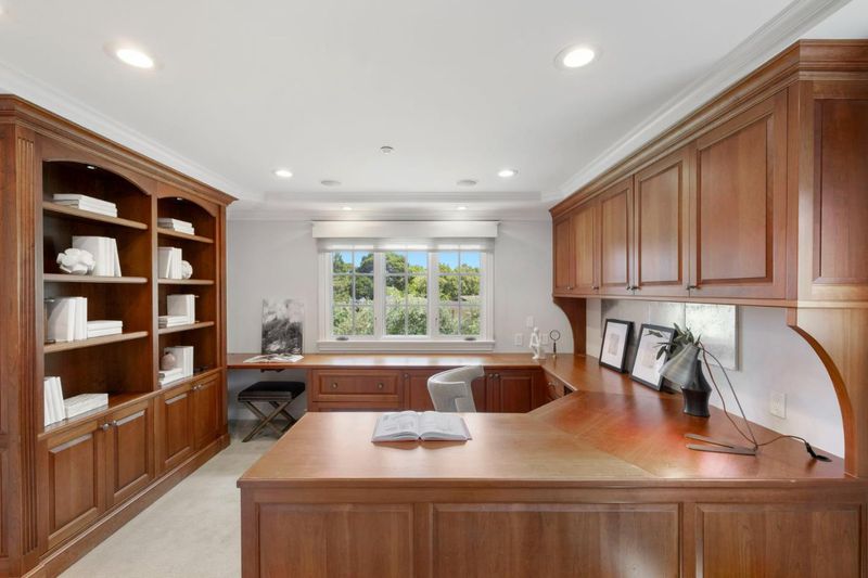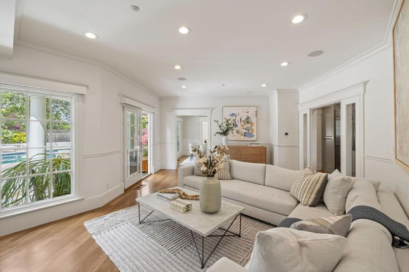 Located in prime Lower South Hillsborough, this beautifully updated home sits on approximately 0.42 acres of flat, private, and meticulously landscaped grounds designed for effortless indoor-outdoor living. The front yard features manicured turf and a putting green, while the backyard offers a resort-like setting with a pool, built-in BBQ, outdoor TV, and multiple entertaining areas. Light-filled interiors showcase a seamless flow with a spacious kitchen/family room combination and formal living and dining rooms, all oriented toward the backyard. A rare highlight is the presence of two primary suites, providing exceptional flexibility. The upstairs primary retreat features dual closets, a private deck overlooking the pool, a spa-like bath with soaking tub, dual sinks, and high ceilings, plus an attached office with built-ins. A nursery is conveniently located adjacent to this suite. A second primary suite is located on the main level and overlooking the backyard. Alongside, is 2 additional bedroom suites, offering comfort and privacy for family and guests. Ideally located, mere blocks from Crystal Springs Uplands School, South Elementary, The Episcopal Day School, and just minutes to downtown San Mateo.