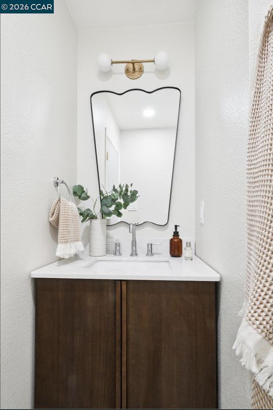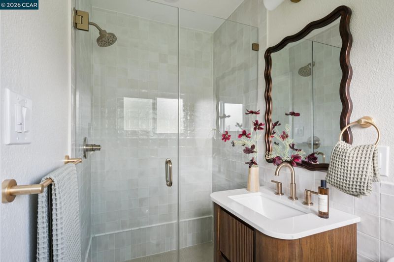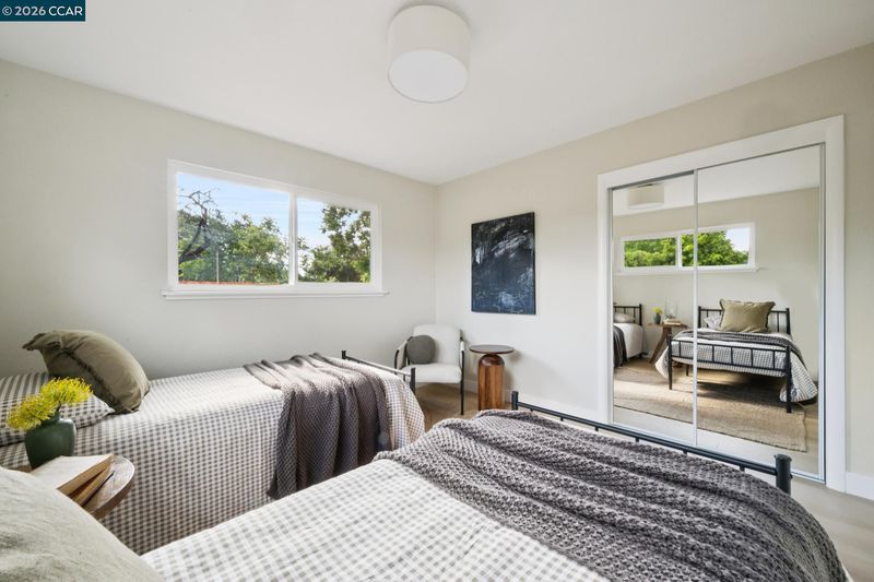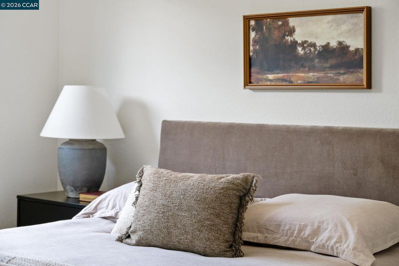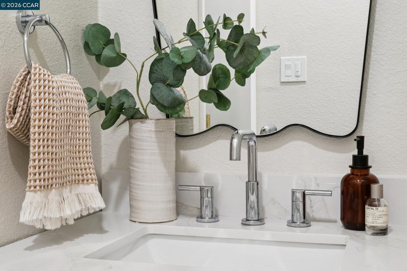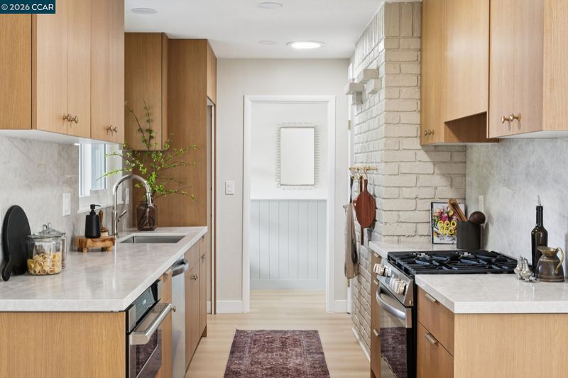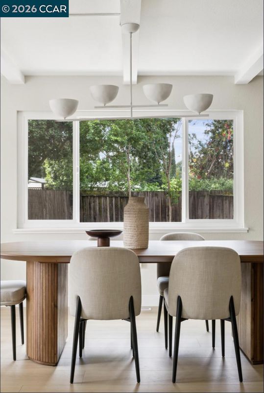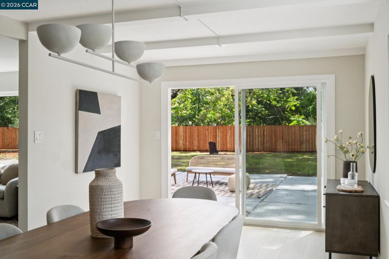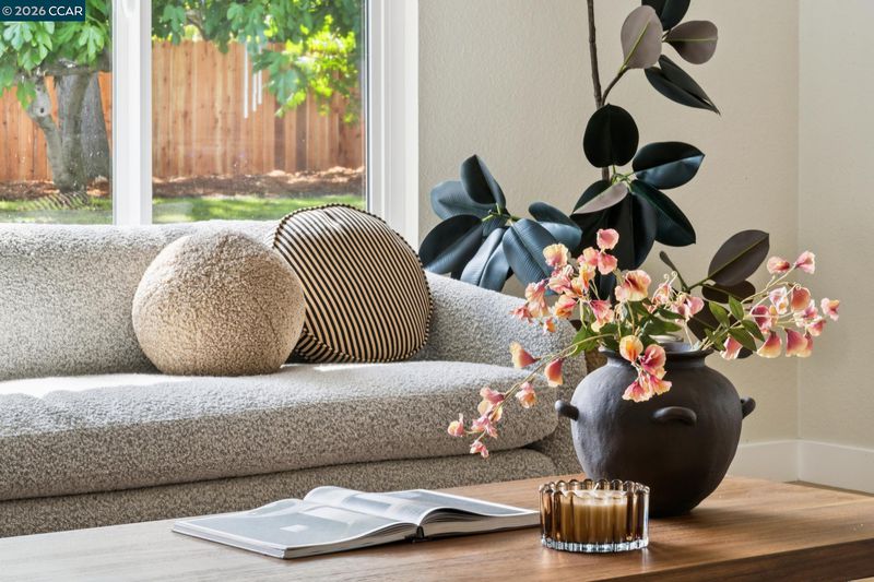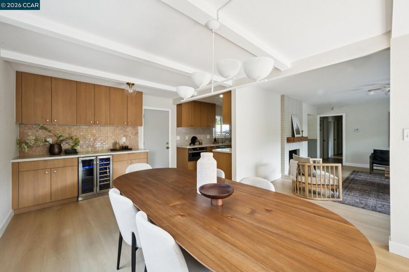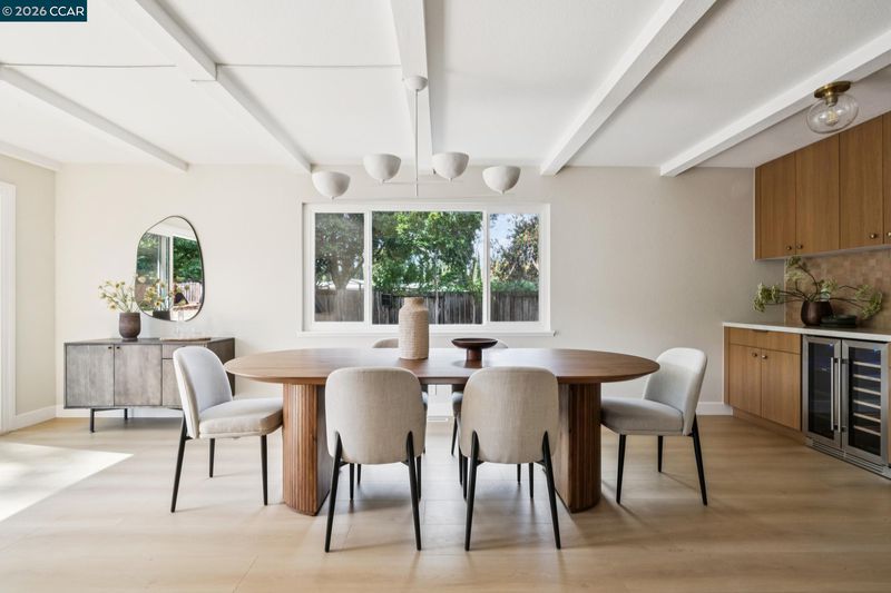 Nestled at the end of a quiet cul-de-sac beneath mature trees, this thoughtfully reimagined home by Maverick Design blends original charm with a complete transformation. Set on nearly half an acre, this 3-bedroom, 2-bath ranch style offers privacy, space, & curated design throughout. A long drive framed by fresh sod leads to the covered porch and statement wood front door. Inside, natural light highlights all-new flooring, windows, & designer finishes, balanced by character details like exposed brick. The kitchen is a standout with Taj Mahal quartz countertops, Scandinavian oak cabinetry, & new stainless-steel appliances. The kitchen opens to an oversized dining area with a built-in bar and wine fridge. The living room overlooks the expansive backyard, creating an easy indoor-outdoor flow. Two well-sized bedrooms share an updated hall bath, while the primary suite features a walk-in closet & a beautifully finished en-suite. For those warm East Bay summers, there’s a new HVAC to add comfort & efficiency. The large pie-shaped lot offers space to entertain, expand, or unwind. Located near Pleasant Hill BART, downtown Pleasant Hill, Walnut Creek, & Concord, 457 Nora Court offers a rare blend of privacy, design, & convenience.