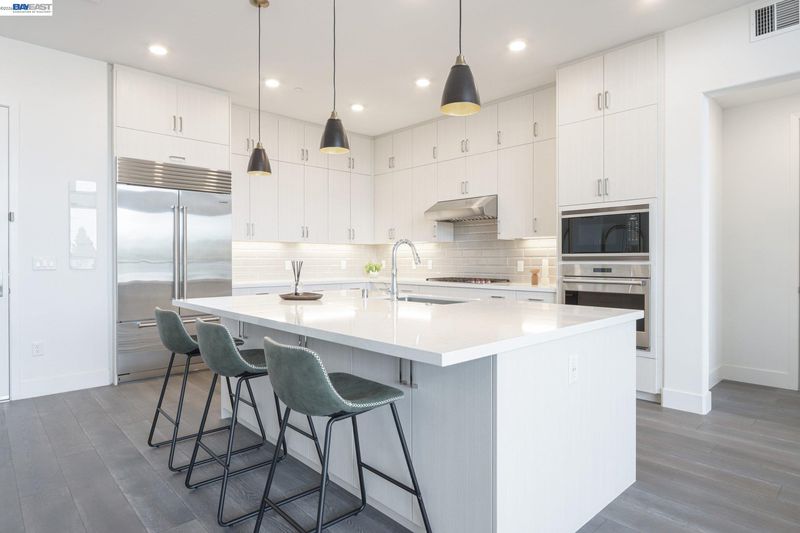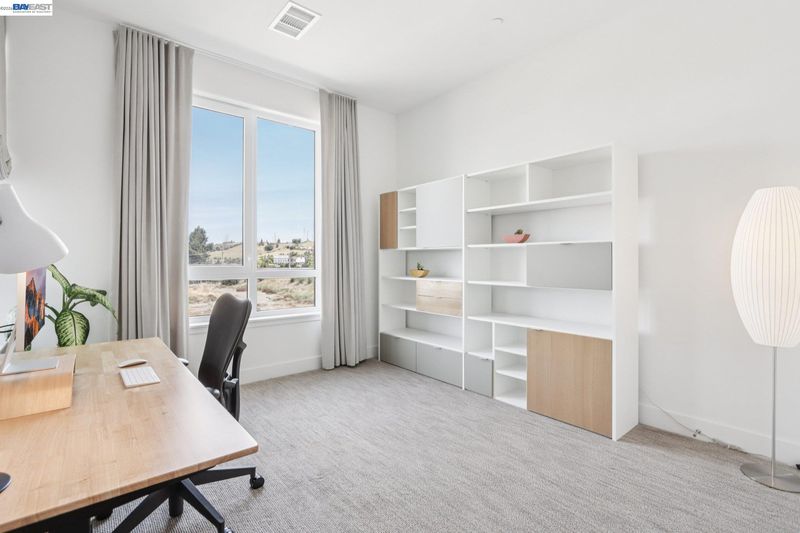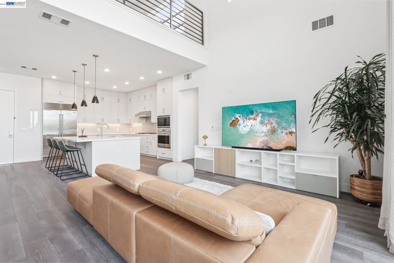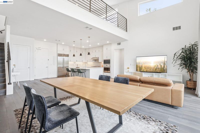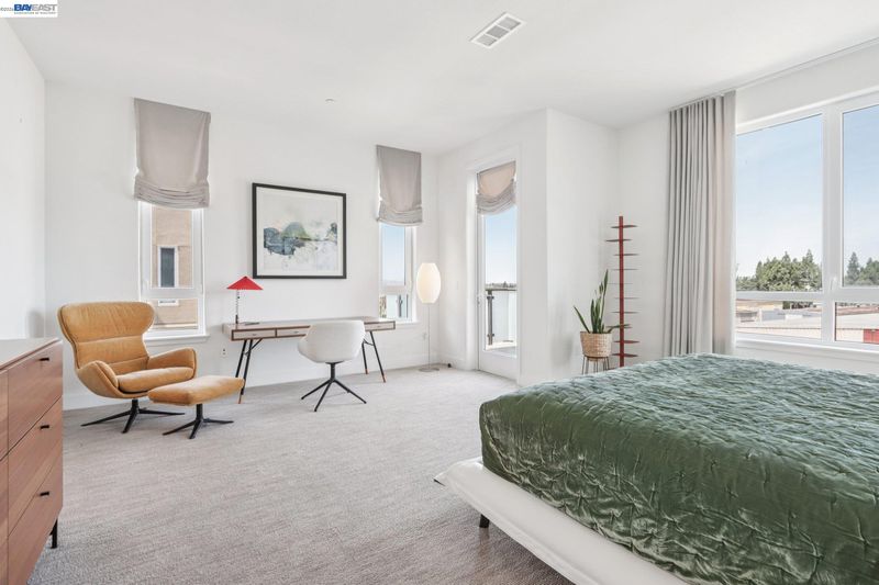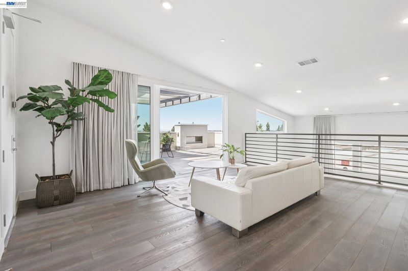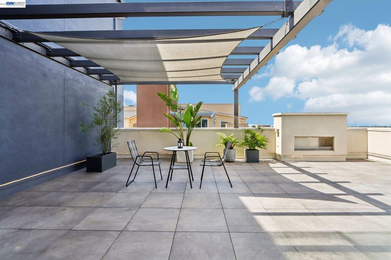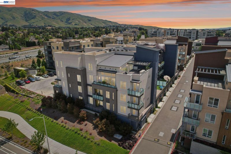 Rare Toll Brothers-built corner penthouse in Fremont’s sought-after Metro Crossing community, offering approximately 2,600 sq. ft. across the top 3rd and 4th floors. No neighbors above and no adjacent building blocking the views, offering exceptional privacy, openness, and natural light. 10-ft ceilings throughout and a soaring 15-ft ceiling in the living room, along with a dramatic 12-ft stacking slider and upper windows, create a bright and airy feel throughout.The open-concept great room flows seamlessly into the dining area and upgraded chef’s kitchen featuring top-of-the-line finishes, Wolf appliances, and a built-in Sub-Zero refrigerator. Two exceptional outdoor spaces include a large balcony off the main living area and a private rooftop terrace with a linear fireplace, perfect for relaxing or entertaining.The upper level offers a spacious media room and full junior suite, providing flexible space for guests, multigenerational living, or a home office. Custom built-in cabinetry adds style and functionality throughout.Additional highlights include a private two-door garage, dedicated storage room, and 240V EV outlet upgrade.Residents enjoy resort-style amenities in a prime location near Warm Springs BART, major commute routes, and Lila Bringhurst Elementary. Luxury, privacy,