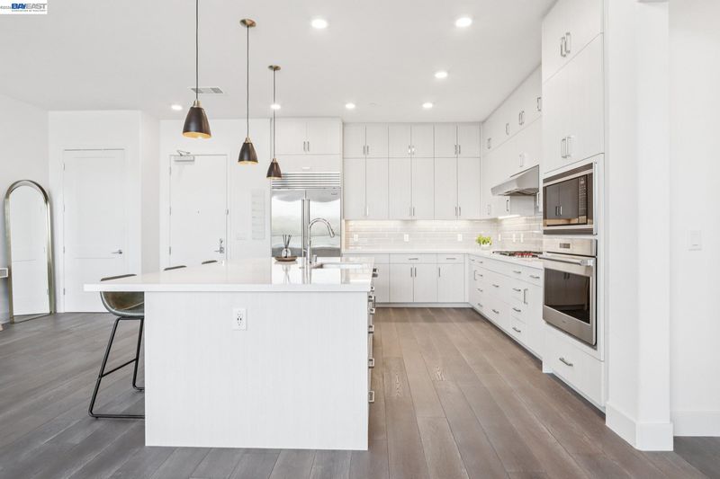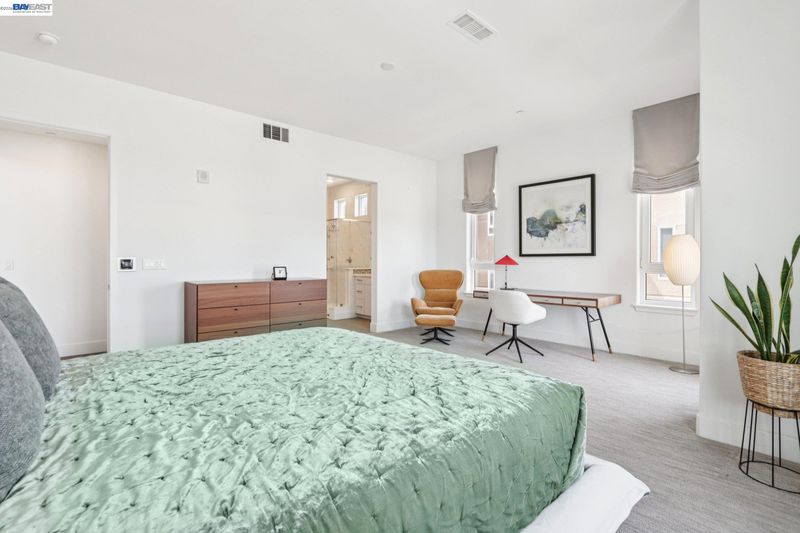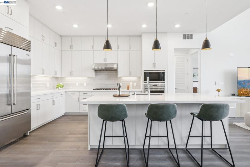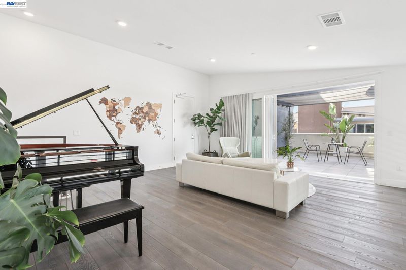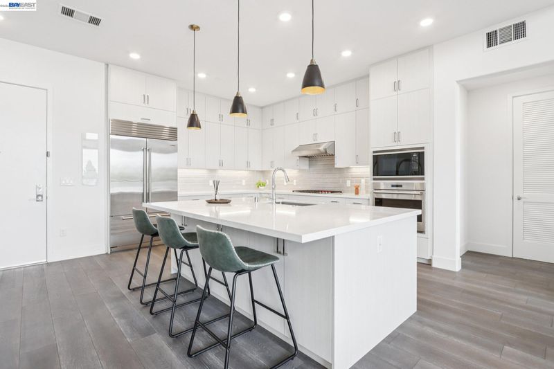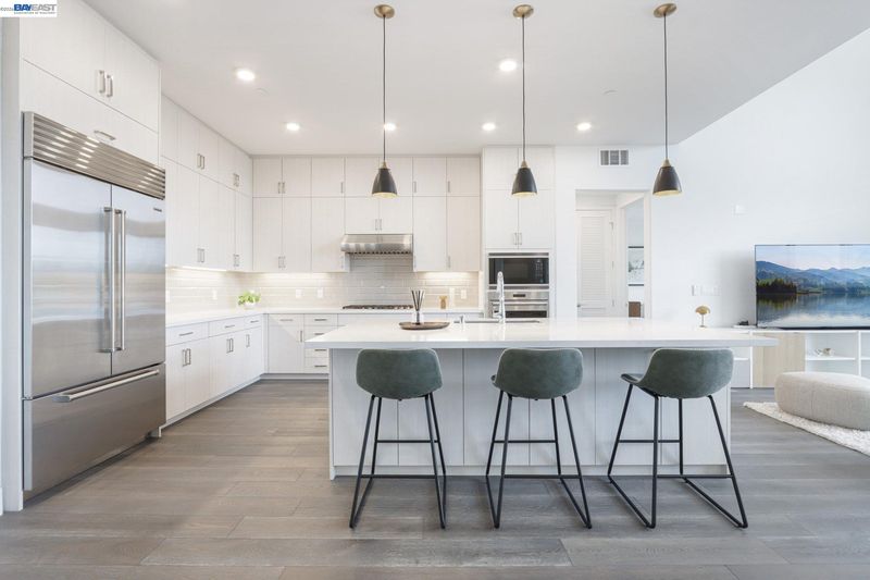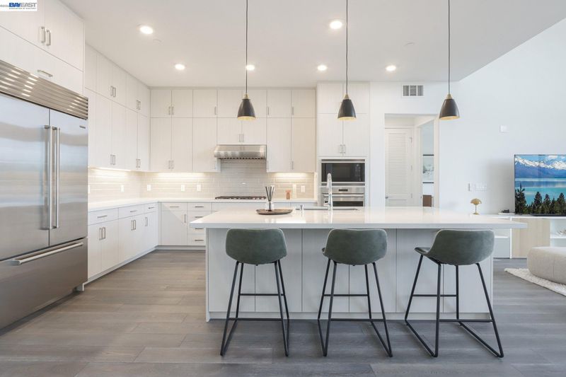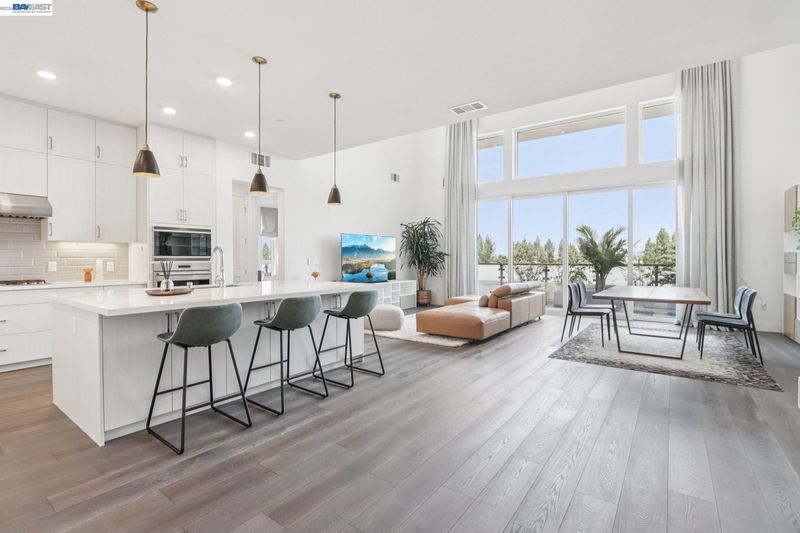 Rare Toll Brothers-built corner penthouse in Fremont’s sought-after Metro Crossing community, offering approximately 2,600 sq. ft. across the top 3rd and 4th floors. No neighbors above and no adjacent building blocking the views, offering exceptional privacy, openness, and natural light. 10-ft ceilings throughout and a soaring 15-ft ceiling in the living room, along with a dramatic 12-ft stacking slider and upper windows, create a bright and airy feel throughout.The open-concept great room flows seamlessly into the dining area and upgraded chef’s kitchen featuring top-of-the-line finishes, Wolf appliances, and a built-in Sub-Zero refrigerator. Two exceptional outdoor spaces include a large balcony off the main living area and a private rooftop terrace with a linear fireplace, perfect for relaxing or entertaining.The upper level offers a spacious media room and full junior suite, providing flexible space for guests, multigenerational living, or a home office. Custom built-in cabinetry adds style and functionality throughout.Additional highlights include a private two-door garage, dedicated storage room, and 240V EV outlet upgrade.Residents enjoy resort-style amenities in a prime location near Warm Springs BART, major commute routes, and Lila Bringhurst Elementary. Luxury, privacy,