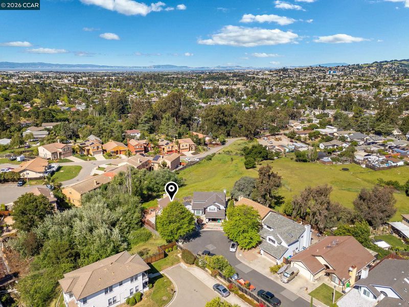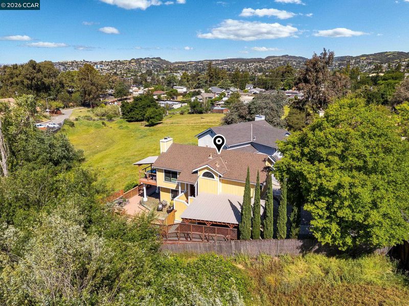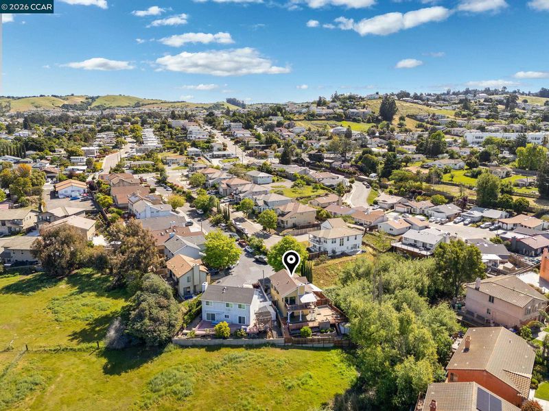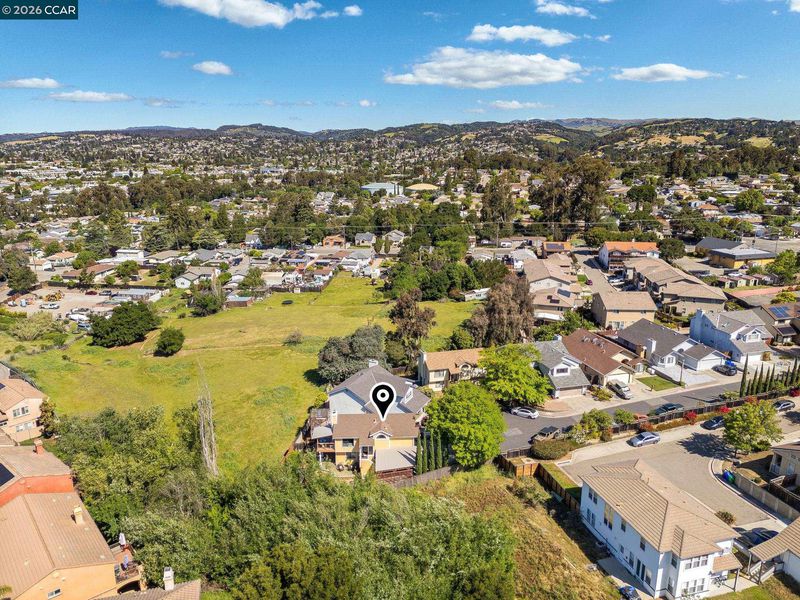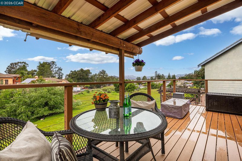 End-of-cul-de-sac setting in the Fairview area with privacy, open surroundings and views of Mission Hills, eucalyptus and a distant glimpse toward the Bay. Backing to open land with a pastoral backdrop, often dotted with grazing sheep, the setting feels unexpectedly removed while still close to everyday conveniences. The layout is designed for flexibility across two levels, with the main living spaces positioned upstairs to maximize natural light and connection to the surrounding setting. Vaulted ceilings and large windows create an open, airy feel, while the living room centers around a fireplace and opens directly to an expansive balcony that captures the surrounding views, ideal for outdoor dining, relaxing or unwinding at the end of the day. The dining area connects seamlessly to the updated kitchen, featuring granite countertops, stainless steel appliances, ample cabinetry and a functional layout that supports both daily use and hosting. A separate room off the kitchen offers versatility for a home office, additional living space or formal dining, adapting easily to changing needs. The primary bedroom is located on the main level with convenient access to a full bath, while the lower level offers two additional bedrooms and a full bath, creating a distinct bedroom wing that works well for guests, multigenerational living or workspace separation, with direct backyard access that enhances flexibility and privacy. Outdoor living is a standout with a spacious balcony and expansive deck areas that take full advantage of the setting, creating multiple zones for dining, gathering or quiet retreat. The backyard offers usable space for entertaining, gardening or relaxing, complemented by a mature lemon tree and the natural landscape beyond. Parking is a standout feature with a two-car garage, oversized carport, extended driveway with space for multiple vehicles and additional street parking, accommodating a variety of needs. Easy access to hiking at Five Canyons Open Space and Don Castro Regional Park, plus convenient connections to BART, 580 and 880. Close to K-12 schools, adding to the overall convenience of the location.