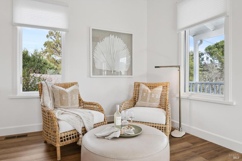 Located in Corte Madera's historic downtown near Old Town Square and Menke Park, this beautifully remodeled Craftsman bungalow offers an exceptional lifestyle setting in one of Marin's most high-demand neighborhoods. Move-in ready, the 3-bedroom, 2.5-bath home provides approximately 1,600 sq ft of thoughtfully updated living space, blending timeless Craftsman character with refined modern design. Featuring a chef-inspired kitchen and a luxury primary bath, along with 2023 upgrades including new windows and doors plus a whole-house Puronics water filtration system, the home features a bright, open floor plan where the living, dining, and kitchen areas flow seamlessly to a spacious deck and landscaped yard ideal for indoor-outdoor living and entertaining. The main-level primary suite offers comfort and flexibility, while two additional upstairs bedrooms enjoy abundant natural light and lush green outlooks. The updated kitchen includes premium appliances and a generous 9-foot island with seating, opening directly to the sunny outdoor deck. A converted garage provides excellent versatility as a home office, gym, or creative space, complemented by two large storage areas rare and valuable features in this central location. Situated at the start of the Corte Madera bike path and minutes to downtown Larkspur, with close proximity to world-class hiking, parks, restaurants, shopping, and quick access to Highway 101, this home delivers the very best of the Marin lifestyle. A rare opportunity to own a stylish, turn-key Craftsman offering modern convenience, energy-efficient upgrades, and an exceptional central Corte Madera setting.