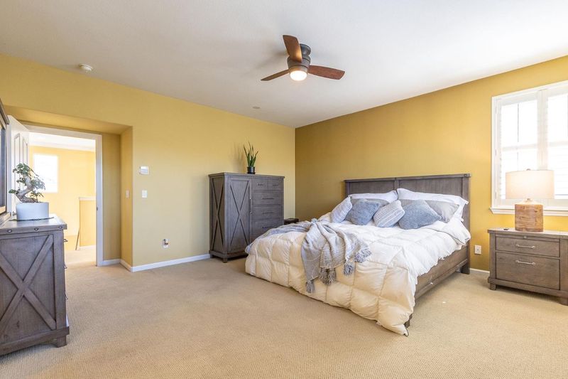 Elegant 5-bedroom home in vibrant San Jose. Discover the perfect blend of comfort and sophistication in this stunning 5-bedroom,3.5-bathroom home in the heart of San Jose. Spanning 2,626 sq.ft, this beautifully designed residence boasts modern amenities and thoughtful upgrades throughout. The culinary kitchen is a chef's dream, featuring granite countertops, European-style maple cabinetry, gas cooktop, built-in oven, pantry, & energy efficient recessed lighting. High-end details enhance the home's appeal, including a Therma-Tru insulated entry door, soaring 9-foot ceilings, elegant bay windows, & pre-wired speakers in the family room. Enjoy the warmth of a cozy fireplace and the charm of hardwood flooring. Luxurious primary suite, offers a spa-like bathroom with an oversized soaking tub, stall shower, & dual sinks. Dedicated utility room with washer/dryer hookups, utility sink, central AC, ceiling fans, an EV hookup in the garage perfect for eco-conscious homeowners. Nestled in a prime location with easy access to hwy 101 & 85, this home is just minutes from gyms, grocery stores, dining, coffee shops, shopping malls, & the prestigious Silver Creek Country Club. Don't miss this opportunity to own a stylish & well-appointed home in a sought-after San Jose neighborhood.