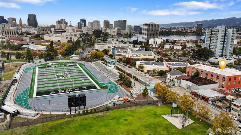 Offering distinctive industrial charm, this stunning loft showcases soaring 15-foot ceilings, Radiant heated wood floors on the 1st floor, and expansive windows that flood the home with natural light throughout the day, creating an airy, welcoming ambiance. The open-concept layout creates a seamless flow between the living, dining, and kitchen areas perfect for both relaxing and entertaining. The kitchen features stainless steel appliances, including a Wolf range, stainless steel lower cabinetry, and an island with additional storage. A full bathroom completes the main level with a walk-in glass shower and freestanding clawfoot bathtub. Upstairs, the lofted bedroom overlooks the living area, with an opening skylight and built-in storage adding comfort and practicality. Additional highlights include in-unit laundry, one-car parking, and HOA coverage of water and garbage. Located moments from Lake Merritt, this residence offers easy access to the Lake Merritt BART Station and major freeways I-880 and I-980, connecting you quickly to downtown Oakland and San Francisco. Enjoy nearby attractions such as the Lake Merritt Amphitheater, Oakland Museum of California, and vibrant local dining making this loft the perfect blend of urban energy and character.