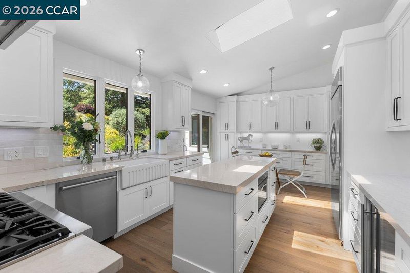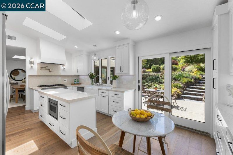 - Dishwasher, Double Oven, Gas Range, Plumbed For Ice Maker, Microwave, Oven, Refrigerator, Stone Counters, Eat-in Kitchen, Disposal, Gas Range/Cooktop, Ice Maker Hookup, Oven Built-in, Skylight(s), Updated Kitchen, Other