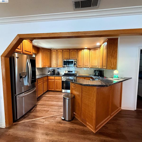- Dishwasher, Gas Range, Plumbed For Ice Maker, Microwave, Range, Refrigerator, Self Cleaning Oven, Washer, Gas Water Heater, 220 Volt Outlet, Breakfast Bar, Counter - Solid Surface, Disposal, Gas Range/Cooktop, Ice Maker Hookup, Range/Oven Built-in, Self-Cleaning Oven, Updated Kitchen