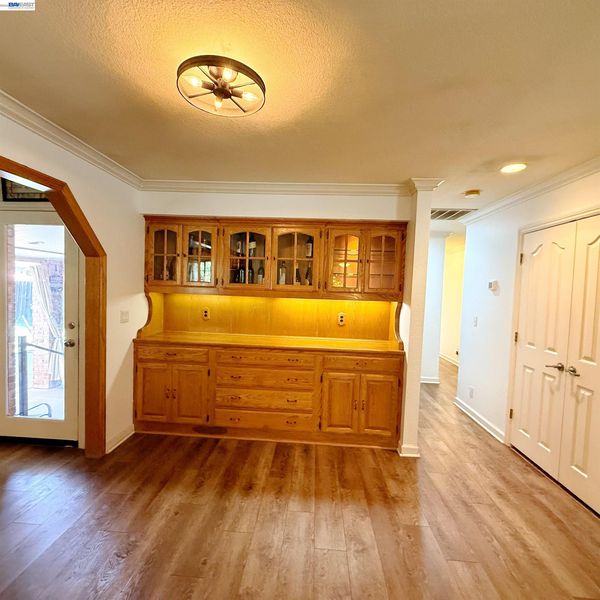 Welcome home to this charming, updated corner lot single story home, 4 bedrooms, 2 bathrooms, and 2 car garage with side yard access nestled in a desirable neighborhood. This beautiful home welcomes you with elegance of spacious living room, thoughtfully designed expanded dining area accented with custom buffet table & lighted oak cabinets. Spacious gourmet kitchen with upgraded oak cabinets, granite countertops, stylish full backsplash tiles, recessed lightings, stainless steel appliances, refrigerator, breakfast bar and a huge walk-in pantry. This amazing home has enhanced with its natural hardwood floors, crown moldings throughout, built in surround sound, ceiling fans, inside laundry with washer and dryer, jetted tubs, recently remodeled shower with dual shower heads, huge walk in closet with custom cabinets, central A/C, SOLAR system owned for low energy bills, good sized backyard with covered patio perfect for entertaining family and friends. Ideally situated nearby shopping, restaurants, schools, University of Pacific and easy freeway access. Don't miss out this gem. A pride of ownership!