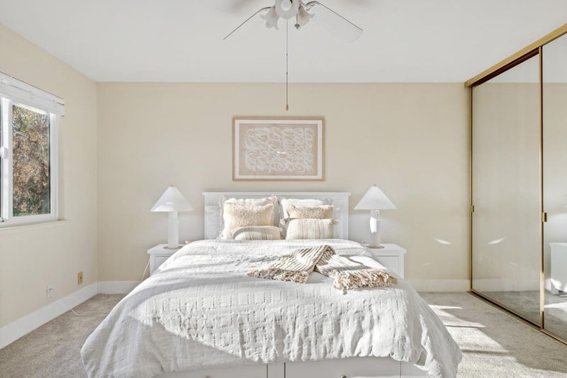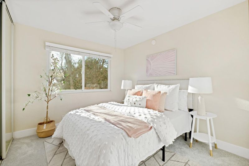 *Welcome to this newly updated corner unit, where modern comfort seamlessly blends with timeless style. Featuring high ceilings, expansive windows and glass doors, this bright and airy home offers a warm, inviting ambiance throughout. The spacious open-concept living and dining area flows seamlessly into a sleek kitchen, complete with stainless steel appliances, ample cabinetry, and a convenient breakfast bar, perfect for everyday living and entertaining. *Enjoy relaxing moments on the charming balcony, which overlooks a lush greenbelt and includes a bonus storage room. Enjoy the added convenience of newly installed flooring, central heating, in-unit laundry, and a detached garage #228. The generously sized master bedroom features a custom-shelved closet and an elegant ensuite bath with dual sinks. *Ideally located just a short walk from Townsend Park, this gem is surrounded by popular spots like Safeway, Sprouts, H-Mart, Ranch 99, and Costco. Enjoy seamless access to major freeways (101, 680, 880, 237), BART , and leading tech giants such as Nvidia, Google, Apple, and Supermicro. An extraordinary blend of comfort, style, and convenience.