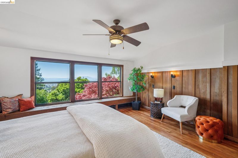 Beautiful Berkeley Craftsman with Bay & Bridge Views! Come enjoy this classic Berkeley Craftsman in the Berkeley Hills offering picturesque views and a gorgeous landscaped yard. The flexible layout includes 1 bedroom, office, and full bath on the main level, plus 4 additional bedrooms upstairs. A lower-level studio with separate entrance, kitchen, and bath provides extra space for guests, extended family, or potential rental income. Classic architectural details shine in the light-filled living and dining rooms with preserved woodwork, box beam ceilings, and gleaming Madrone floors. Built-ins, custom shelving, and a vintage phone nook paired with abundant natural light, create a warm and inviting atmosphere. Extensive windows frame the picturesque view perfectly. The spacious custom designed kitchen with stunning Julia Morgan inspired tile is the heart of the home, flowing seamlessly into the main living areas and office. Upstairs, 4 spacious rooms offer flexibility and comfort. Relax outdoors on the private deck, enjoy the peaceful landscaped garden, or unwind in the cedar hot tub under the stars. Home energy score 1. Conveniently located near Solano Ave, Indian Rock Park, and Kennsington with easy access to shops, dining, and scenic Berkeley Hills trails.