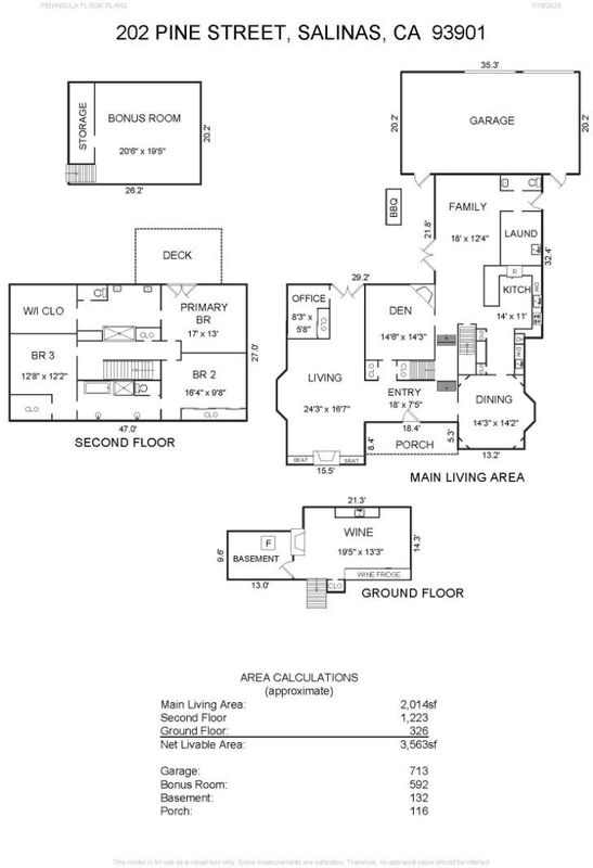 Sophisticated living on a 14,300 sf lot in Maple Park, this 3,243 sf home is a testament to superior craftsmanship. Gourmet kitchen has Sub-Zero refrigerator, six-burner cooktop, double ovens, 2 bosch dishwashers & limestone counters. Main floor offers dining room, living room, den, office, family room, laundry room & ½ bath. The hidden gem is a lower level wine room w/ 450 bottle temp controlled wine storage, cabinetry, refrigerator/freezer drawers, & fireplace for the ultimate tasting experience. Unique dual-access staircase leads to the 2nd level. Primary suite is a sanctuary w/ private balcony. Primary bath has heated floors, double shower, double sinks & walk-in closet. 2 bedrooms share a jack & jill bathroom w/ heated floors, soaker tub & shower. The home's position offers a unique backyard micro-climate, shielded from NW winds. Enjoy serene backyard w/ cypress trees & tranquil water feature, heated trellis area, lush plants, fruit trees, & built-in BBQ. French doors from the living room & family room create an indoor-outdoor transition. 2 car garage w/ storage, workshop area & bonus room upstairs. Misc features; Sierra Pacific doors & windows, wood flooring, high-efficiency furnace, tank-less water heater, water treatment system, 3 fireplaces & unparalleled craftsmanship.
