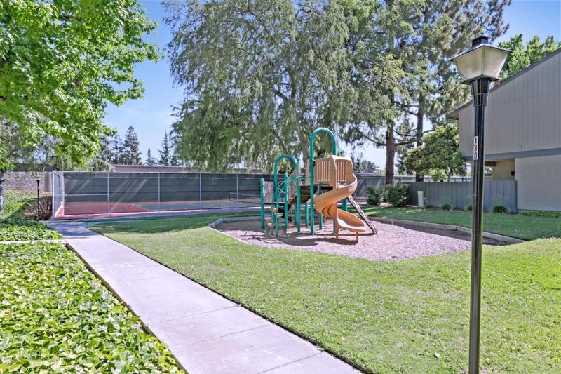 Updated and staged townhouse located at Strawberry Square community. This one is the best location in the complex, beautiful community views and more privacy on both side 1230 SF living space, 1 Car garage and 1 Carport. More parking spaces at complex and street. Laminate floor throughout the up floor, kitchen with granite kitchen countertop, dual pane windows, cozy and lovely, good size for the family. The complex has pool, tennis courts, club house and children's playground. Centrally located in Silicon Valley, with walking distance to dining, shopping, parks, and award-winning Cupertino schools. Easy access to Highway.