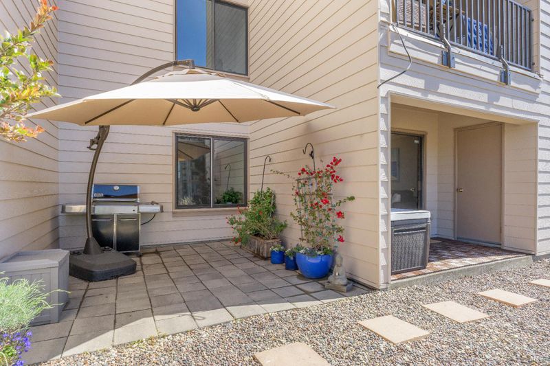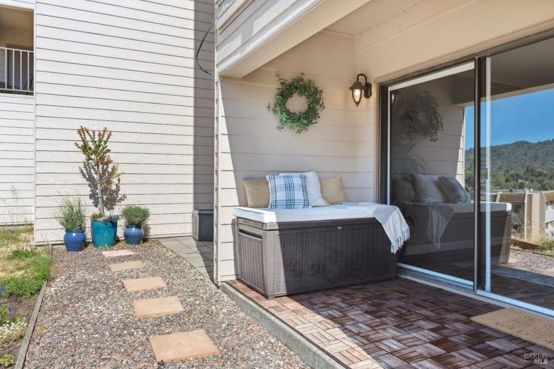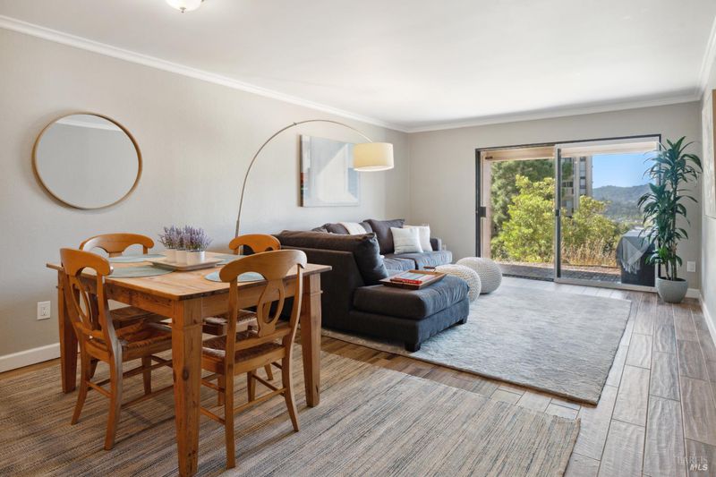A cute and quiet 2 bed, 1 bath, 726 Via Casitas is an affordable and turn-key way to ownership in one of Marin's premier and most conveniently located complexes. The back patio offers additional storage and outdoor living options with serene views of Christmas Tree and East Bay Hills. Stainless steel appliances, updated sub-laminate floors, radiant heat, and an in-unit washer and dryer complete this ground-floor unit. The pet-friendly Spyglass Hill complex includes a swimming pool, spa, and tennis courts. A stone's throw from iconic hiking trails, Highway 101, Bon Air shopping center, and top-rated schools make this one of the best deals in Marin. Photos from previous listing; property no longer staged.