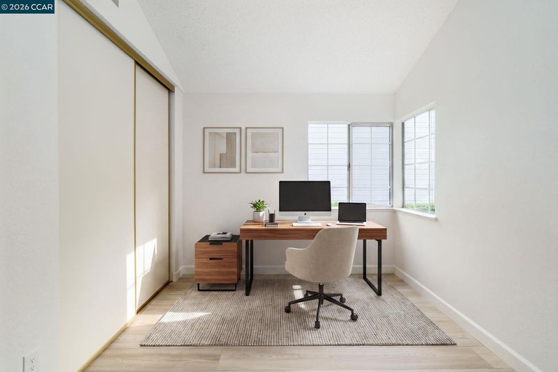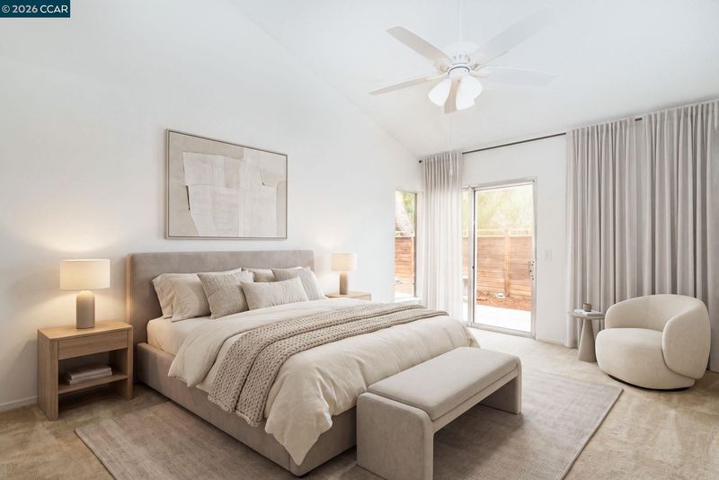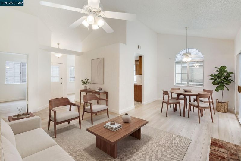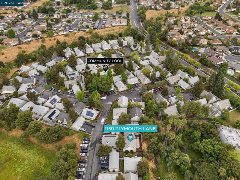 Beautiful detached single-story townhome located in the highly desirable Village Pointe community of Antioch. 1510 Plymouth Lane is tucked away in a private, serene setting, this home features a picturesque backdrop of mature redwood trees, creating the perfect environment to relax and enjoy the spacious backyard. Offering 3 bedrooms and 2 bathrooms with approximately 1,198 sqft of living space, the home boasts laminate flooring throughout the main living areas, fresh interior paint, and soaring vaulted ceilings that enhance the open feel. The well-appointed kitchen provides ample storage and includes a charming breakfast nook, ideal for casual dining. Additional highlights include an indoor laundry closet accommodating most standard washer and dryer units, a detached garage, and convenient guest parking. Residents also enjoy access to community amenities including a pool and clubhouse. A wonderful opportunity to own in a peaceful, well-maintained community. Some photos have been virtually staged.