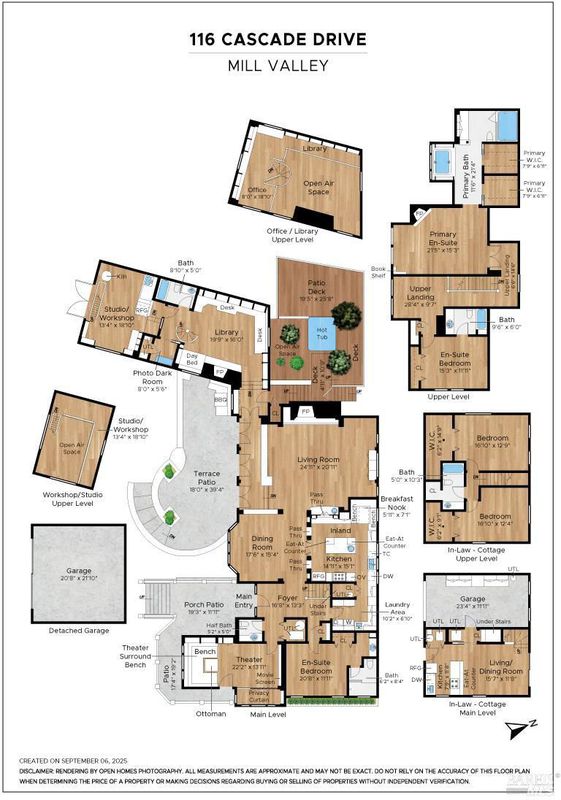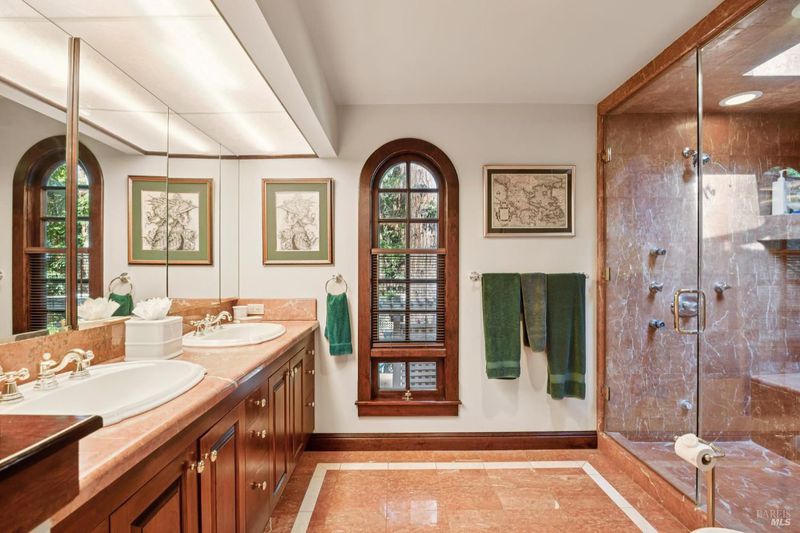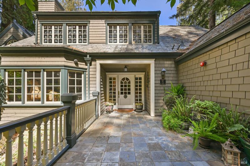 Set beneath the redwoods, this estate-like property evokes the character of a secluded retreat while being only moments from downtown Mill Valley. The main home offers 3 bedrooms and 4.5 baths, thoughtfully designed for both gathering and quiet escape. Inviting living spaces include a warm two-level library, a media room, and an art studio. The chef's kitchen with built-in dining nook flows into the dining room and a cozy living room with a wood-burning fireplace and French doors opening to the front terrace. The primary suite feels like a sanctuary, complete with two walk-in closets and a window seat overlooking the trees. A second ensuite bedroom is located upstairs, with a third ensuite conveniently on the main level. The property also includes a charming 2-bedroom, 1-bath guest house ideal for visitors or extended family with its own garage, in addition to a 2-car garage for the main home. Nestled in the coveted flats of Cascade Canyon, the setting is as special as the home itself. Old Mill Park, Cascade Falls, Three Pools, and the iconic Dipsea Stairs are all nearby, along with a year-round creek that winds along Cascade Drive with gentle paths to explore. Top schools, world-class hiking and biking trails, and the vibrant shops and restaurants of downtown Mill Valley are all within easy reach. It's a rare place where you can feel both tucked away and fully connected.