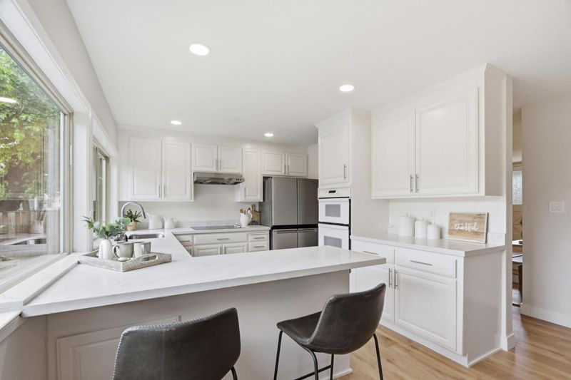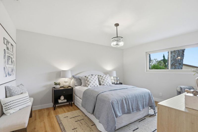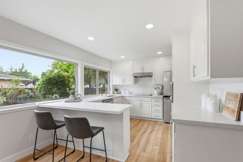 This exquisitely remodeled 5 bedroom home is situated in one of West San Jose's most desirable enclaves.It offers the ideal balance of functional space & contemporary updates within the prestigious Cupertino School District.The heart of the residence is a refreshed kitchen featuring NEW quartz counters, NEW recessed lighting, huge windows overlooking the rear yard, and NEW stainless steel appliances. Entertain in the grand living room w/ its massive picture window or retreat to the family room anchored by a classic brick gas fireplace. NEW Luxury Vinyl Plank flooring & fresh paint flow throughout the interior.The layout includes a versatile lower-level suite with a Murphy bed & adjacent full bath featuring a NEW light oak vanity. The primary sanctuary boasts a large walk-in closet & an updated bath with NEW double sinks. Year-round comfort is ensured by NEW central AC, a whole-house fan, & dual-paned windows. Outside, the newly refreshed rear yard features stone walkways & lawn area, complemented by a private gated front courtyard. Strategically located near the Apple campus & major commuting routes, this is a rare chance to own a move-in home in a premier neighborhood. Don't miss this incredible opportunity! (This residence has been professionally measured at 2,245 square feet).