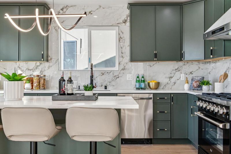 - Countertop - Quartz, Dishwasher, Hood Over Range, Oven Range - Built-In, Gas, Refrigerator