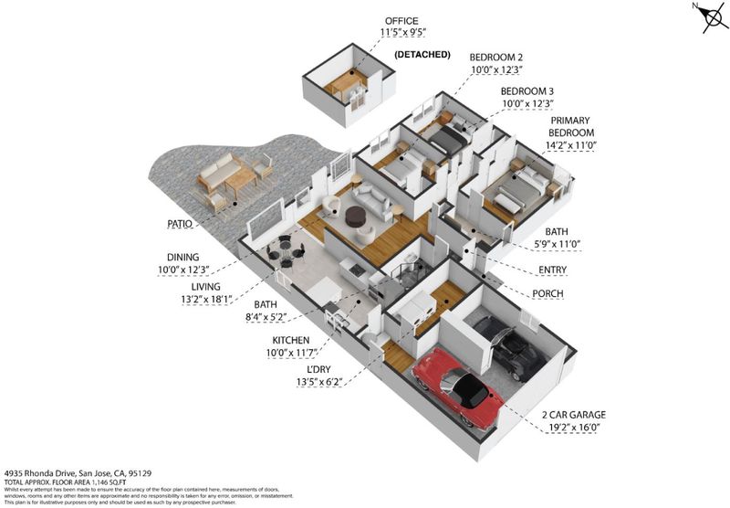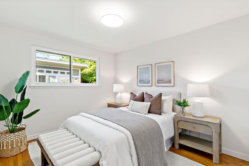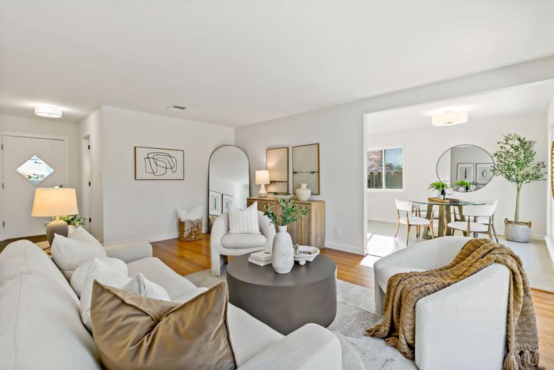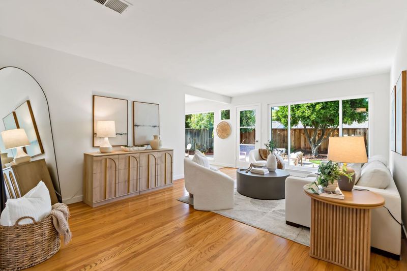 Charming single-story home nestled in the highly desirable Happy Valley neighborhood, served by award-winning Country Lane Elementary. Set on a picturesque tree-lined street, this inviting residence offers a bright living room with a large picture window that fills the space with natural light. The eat-in kitchen features stainless steel appliances and a comfortable dining area perfect for everyday living. This well-maintained home includes 3 bedrooms and 2 beautifully remodeled bathrooms, complemented by hardwood flooring, dual-pane windows, and central heating and air conditioning for year-round comfort. A spacious laundry room provides additional storage and convenience. Step outside to a sunny backyard retreat with a flagstone patio and sun deck ideal for relaxing or entertaining along with a prolific orange tree. The detached finished shed offers versatile space, perfect for a home office, workshop, or creative studio. Ideally located near Westgate and El Paseo shopping centers, Sprouts, and Trader Joes, Saratoga Creek Park, and easy access to major commute routes, this home combines comfort, charm, and convenience in one exceptional package.