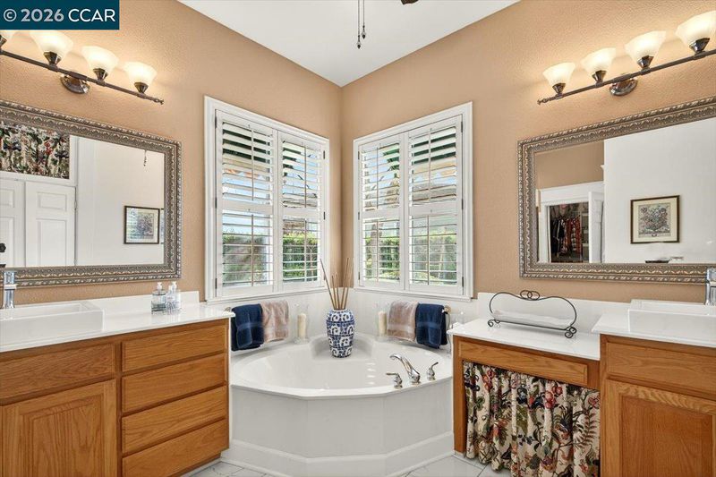 New Price! Uniquely Crafted Corner Lot Oasis! Introducing the Shining Star in Summerset II, a premier 55+ gated community! This immaculate house features three bedrooms and two and one-half bathrooms on a showstopping, approximately quarter acre corner lot. The chef's kitchen boasts a Viking gas range, Viking wall oven, quartz countertops, an elegant curved breakfast bar, and a butler's panty. Ruvati stainless steel sinks complement the space. Porcelain tile and hardwood flooring flow throughout the home, which includes spacious formal dining and living rooms ideal for entertaining. The dual bedrooms each have ensuite bathrooms, and the primary suite offers double sinks, a soaking tub, and a triple hung walk-in closet. Custom architectural detail include crown moldings, decorative columns, and wainscotting that accentuates the home's pristine elegance. French doors, built-in cabinetry, and Sunburst Poly-Wood Plantation Shutters are additional premium features. The home also offers a refaced three-sided gas burning fireplace with a media center, a newer HVAC system, ample storage, solar system, updated 220 volt electrical, and a private, fully enclosed, meticulously manicured yard with mature trees, stamped concrete patio, fountain, and majestic gardens. An attached two-car garage and a separate golf car garage provide additional storage. Summerset II offers its residents and guests a community pool, spa, clubhouse, tennis courts, pickleball and golf course, and the HOA dues are low. The home is conveniently located about 5 minutes away from shopping, hospitals, freeways, and entertainment. This extraordinary home will delight the most discriminating buyer and checks all the boxes. This is truly a rare opportunity to enjoy privacy within community, convenience, and refined California living. A must see! Open Sat., 4/25, 1-3P!
