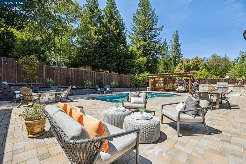 Stunning single-level home in sought-after Westside Alamo, moments from the Iron Horse Trail. Tucked on a private court, this beautifully remodeled 3-bedroom, 2.5-bath home features an open-concept layout, over $600K in updates, and a designer kitchen with an oversized island, high-end appliances, and custom cabinetry. The resort-style backyard is built for California living with a saltwater pool, spa, paver patio, outdoor kitchen, outdoor shower, and gas fire pit. A private bedroom wing includes a serene primary suite with backyard views, sliding glass doors, a remodeled bath, and a walk-in closet. Additional features include FULLY OWNED SOLAR, newer roof, French drains, tankless water heater, and skylights. Close to parks, trails, top-rated SRV schools, and local amenities.