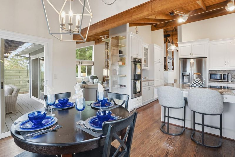 This private home in the Aptos hills less than five minutes above the village, pairs sweeping ocean and mountain views with storybook gardens on over an acre of land. High open-beam ceilings and expansive windows flood the main level with natural light and frame views of the bay and surrounding hills. The kitchen and dining area open to a welcoming patio, ideal for sunset dinners, sunrise coffees, weekend brunches, and easy indoor outdoor entertaining. Three bedrooms and 2.5 baths include a calm primary suite oriented to soft morning light with garden views and an expansive primary bath. Upstairs, a spacious loft room with bay views flexes beautifully as a media room, studio, or home office. Outside, terraced, drought tolerant gardens with roses and productive fruit trees create a private, year round oasis, complemented by a quiet sitting area under a majestic redwood grove. A covered back deck overlooks the gardens and hills, while a detached two car garage and generous parking for an RV, boat, or guests make hosting effortless. Five minutes to New Leaf and Aptos village, 15 mins to Capitola and 20 minutes to Santa Cruz.