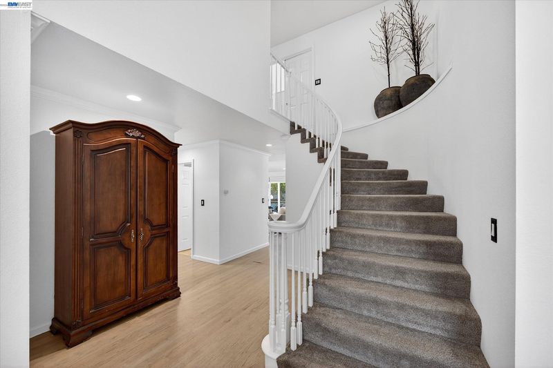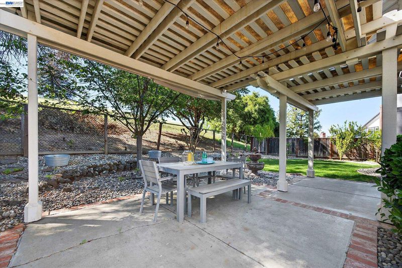 NEW PRICE!!! Located in the sought-after Vintage Hills II community, this spacious 5 bedroom, 3 bath home with owned solar offers comfortable living with vaulted ceilings, light-filled spaces, and a private backyard with protected hillside views. The living room features a tiled fireplace with wooden mantel and opens to the formal dining room with bright windows and French doors to the side yard with a fire pit and hot tub. The kitchen includes generous counter space, a center island with vegetable sink and breakfast bar, white cabinets with some glass doors, subway tile, and stainless steel appliances including a 5-burner gas range, double oven, microwave, refrigerator, and dishwasher. The kitchen opens to the family room with a stacked stone fireplace and sliding glass door to the backyard. A large main-level bedroom sits near a full bath with stall shower and a laundry room with garage access. Upstairs is the primary suite with sitting area, dual vanities, soaking tub, walk-in shower, and walk-in closet. Three additional bedrooms share a hall bath. The backyard offers lawn, covered patio, fire pit, and swim spa/plunge pool. Low HOA with community pool. Near parks, top Pleasanton schools, ACE Train and TECH buses. Open House Saturday/Sun 1-4pm.