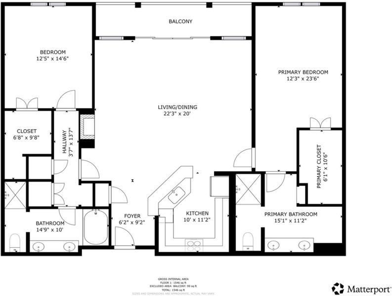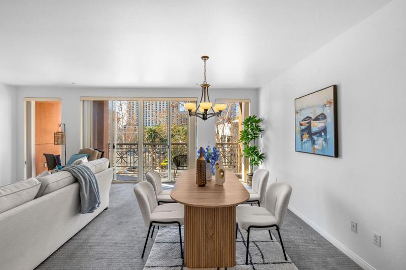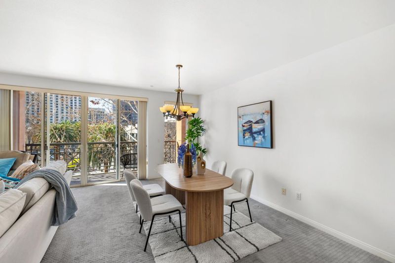 Live in the heart of Downtown San Jose in this well-located residence offering modern urban convenience. Surrounded by coffee shops, restaurants, entertainment, and near the upcoming Google Village and BART extension, this home provides excellent access to Silicon Valley. Commuting is effortless with Caltrain, major highways, and leading tech campuses just minutes away. This 2-bedroom, 2-bathroom condo offers 1,622 sq ft of flexible living space. The functional layout includes a private balcony, perfect for relaxing outdoors. The primary suite features a walk-in closet and a spacious bathroom with a custom stall shower and soaking tub. A second bedroom is ideal for guests or a home office. The open-concept kitchen features quartz countertops and flows seamlessly into the living and dining areas, creating an inviting space for everyday living and entertaining. Additional highlights include two dedicated parking spaces and access to community amenities such as a gym, pool and spa, and social lounge. Located near San Pedro Square, SAP Center, theaters, dining, and nightlife, this home offers comfort, convenience, and an unbeatable Downtown location. Welcome home to Downtown San Jose living.