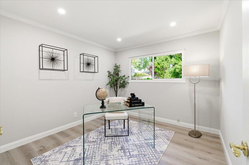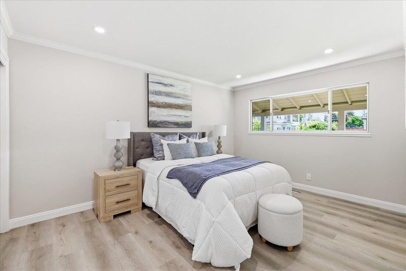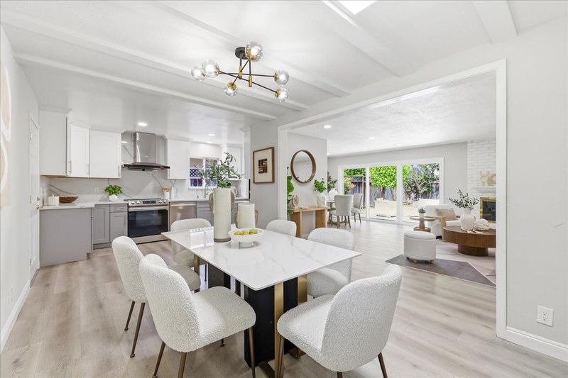Nestled in the highly coveted Cupertino Jollyman neighborhood, this stunning single-story home combines modern elegance with access to top-tier Cupertino schools: Lincoln Elementary, Kennedy Middle, and Monta Vista High. The thoughtfully designed 4BR/2BA floor plan features a spacious, sun-drenched living room with recessed lighting and a cozy fireplace, seamlessly flowing through sliding doors to a private backyard perfect for entertaining. The chefs kitchen is a masterpiece, boasting quartz countertops/backsplash, custom soft-close cabinetry, and high-end stainless-steel appliances, while renovated hallway bathroom featuring a contemporary double vanity and premium fixtures. Beyond its beauty, the home offers unmatched upgrades: Class A composition shingle roof, an upgraded 200A electrical panel with pre-wired EV charging, central heating & A/C and a new water heater. Ideally located within walking distance to the renovated Jollyman Park and De Anza Farmers Market, and just a 3-5 minute drive to the Cupertino Sports Center, Whole Foods, H-Mart/Ranch 99, and Target. Centrally located near Apple, Google, and other tech campuses. Easy access to Hwy 280, 85 & Lawrence Expwy. A rare turnkey opportunity in the heart of Silicon Valley!