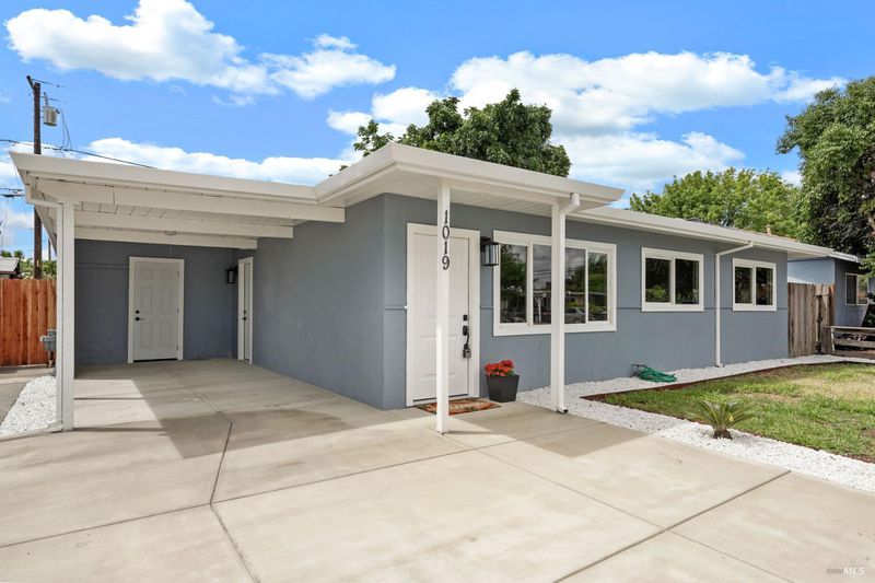 Stop scrolling - this is the one you've been waiting for! This fully updated 3-bedroom, 1-bath home is the perfect opportunity to step into homeownership with style, comfort, and tons of potential for expansion! From the moment you arrive, you'll notice the fresh curb appeal with a brand-new driveway, roof, and all-new windows. Step inside to a bright, modern interior featuring fresh paint inside and out, brand new flooring and carpet throughout, making this home truly move-in ready! The kitchen comes equipped with pristine white cabinets, sparkling new countertops and all new stainless steel appliances. Off the carport and just steps from the kitchen, you'll find a dedicated laundry area housing a brand-new convenient stacked washer and dryer unit. You will love the large attached storage room, offering tons of extra space that's hard to find at this price point! Looking to grow into your home? You're already ahead of the game! Plumbing is in place in the carport for a future bedroom and bathroom addition, giving you flexibility as your needs evolve. The huge backyard is lovely and peaceful, and even has an existing kennel set up for your four-legged family members! Relax on the covered patio and listen to the breeze rustle the leaves of the surrounding mature trees- you won't find a yard like this in a new development! You could easily fit an ADU with room to spare! Imagine the ability to create rental income, space for extended family, or even a private office or workshop! Concerned about soaring energy prices? You are going to be sooo grateful for the owned solar system! Won't it be GREAT to keep monthly costs down while you build equity? Beautiful, affordable, and full of opportunity - this one won't last long so check it out now!