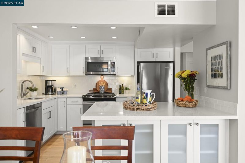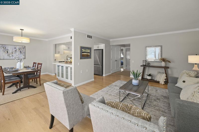 Charming unit located in the 55+ community of Rossmoor. The Sonoma style model is "move in ready" and offers many fabulous updates. The remodeled kitchen has stainless steel appliances, a large white quartz island with custom built-in cabinets and recessed lighting just perfect for entertaining guests. The crown moulding, newer interior doors, window coverings and beautiful hardwood floors bring elegance to the space. Gorgeous views of mountains and redwood trees make this a serene place to relax. There is an in-house laundry within an updated bathroom which provides everyday convenience. The community has a golf course, pools, gyms, club houses and endless activities! The security gate provides safety for all of the residents. This condominium won't be on the market long, so come tour it today!
