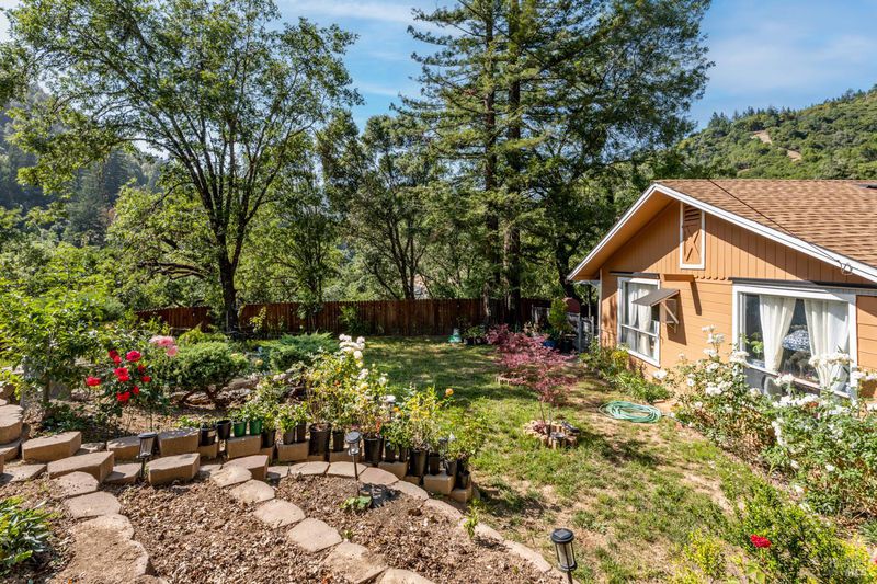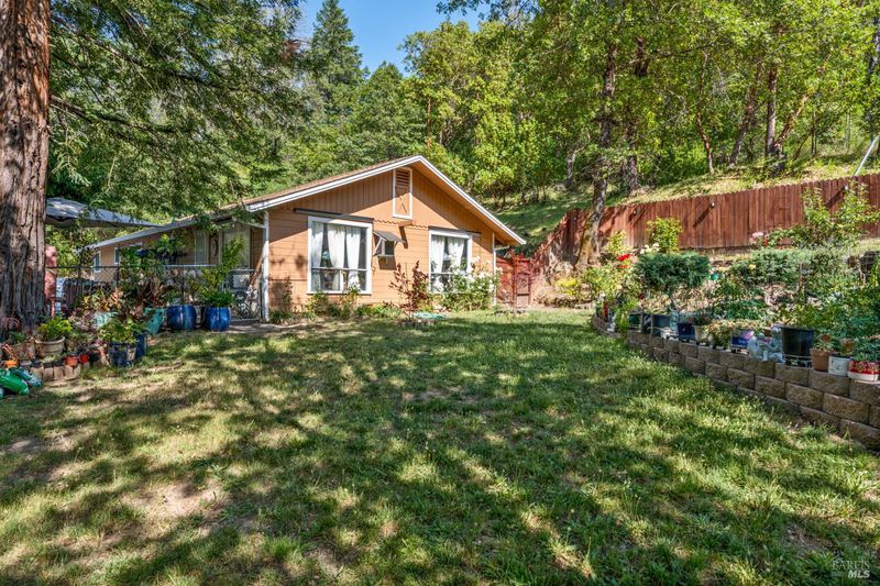 Tucked in the forested hills of Redwood Valley, this 3-bed, 2-bath home offers 1,792 sq ft of peaceful living on 7.5 private acres. Surrounded by mature trees, terraced gardens, and mountain views, the property includes 932 sq ft of additional garage/utility space. Inside, enjoy a light-filled layout with large windows, a cozy wood-burning stove, and views of nature from every room. The vintage kitchen connects to a charming dining area overlooking the yard. A 4-year-old roof provides added peace of mind. Step outside to multiple patios perfect for entertaining or relaxing in the shade of the trees. Decorative landscaping, retaining walls, and fencing add both beauty and structure. A true standout feature is the abundant water supply, fed by both springs and a well, ideal for gardening, livestock, or expansion. Whether you're looking for a full-time residence, a peaceful getaway, or a self- sufficient lifestyle, this hidden gem offers privacy, space, and endless potential in a storybook setting.