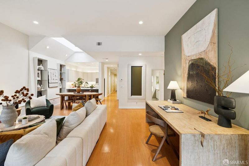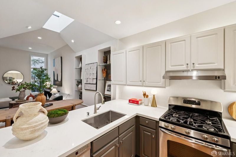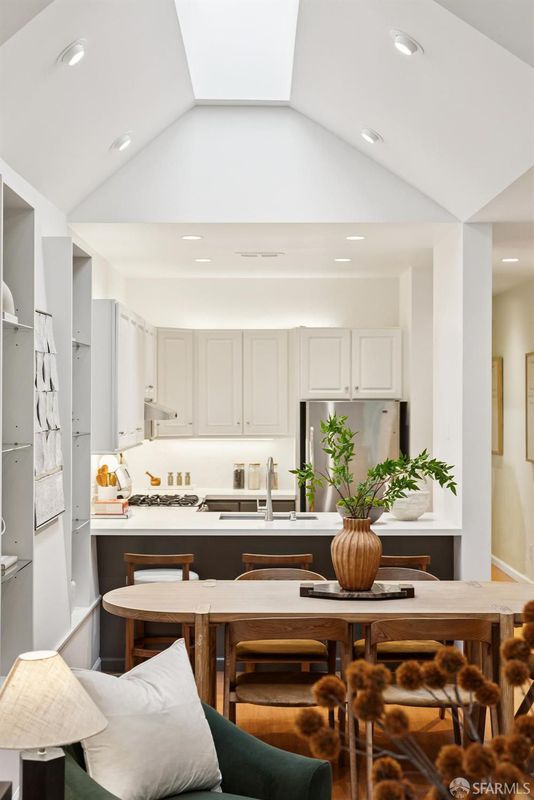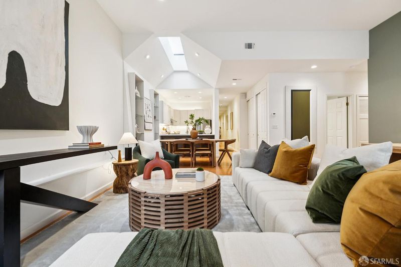 ​Masterful architecture, lofty scale, and grand, house-like amenities anchor this pristine, one-bedroom condominium, which is well-appointed, strategically located, and graced with a massive exclusive patio. Soaring ceilings, gallery walls, huge windows and skylights create an expansive flexible space, flooded with natural light. A sky-lit dining room with soaring ceilings opens to the generously proportioned kitchen, which features fresh new counters, a backsplash, and a layout perfect for entertaining. A separate pantry, in-unit laundry room, private one-car garage, and tremendous storage make this open plan home as comfortable as it is beautiful. Two folks working at home? No problem. Grand scale entertainers? Perfecto. Dogs, urban hikes and ease of getting around town...this is your place! One of two units, set in a serene pocket of Eureka Valley, this sophisticated residence, set back from the charming, tree-lined block, offers city centrality and a sense of retreat. Close to the Castro Village, Kite Hill, Corona Heights and its many tennis courts, Mission Dolores Park, and the historic Castro Theater. This home has it all.