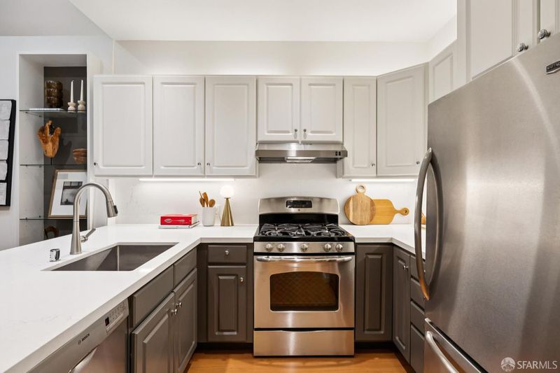 Masterful architecture, lofty scale, and grand, house-like amenities anchor this pristine, one-bedroom condominium, well-appointed, strategically located, and graced with a massive exclusive patio. Soaring ceilings, gallery walls, huge windows and skylights result in an expansive flexible space, flooded with natural light. A sky-lit dining room with soaring ceilings is open to the generously proportioned kitchen with fresh new counters, backsplash, and a layout perfect for entertaining. A separate pantry, in-unit laundry room, private one-car garage, and tremendous storage make this open plan home as comfortable as it is beautiful. Two folks working at home? No problem. Grand scale entertainers? Perfecto. Dogs, urban hikes and ease of getting around town...this is your place! One of two units, set in a serene pocket of Eureka Valley, this sophisticated residence, set back from the charming, tree-lined block, offers city centrality and a sense of retreat. Close to the Castro Village, Kite Hill, Corona Heights and its many tennis courts, Mission Dolores Park, and the historic Castro Theater. This home has it all.