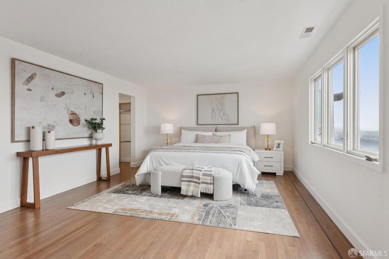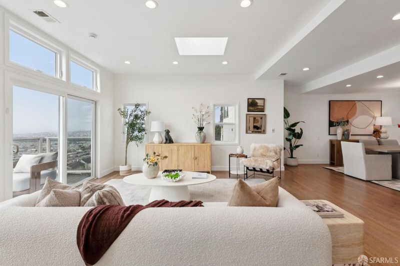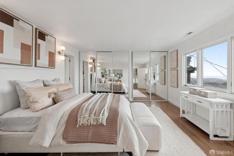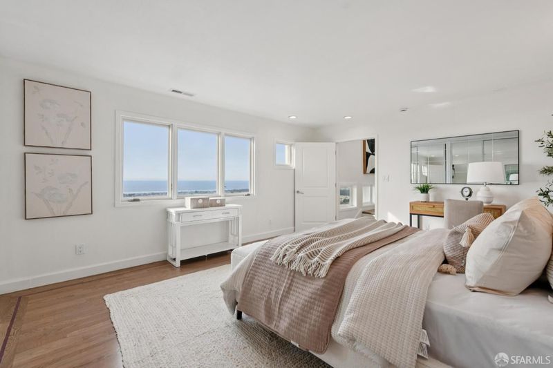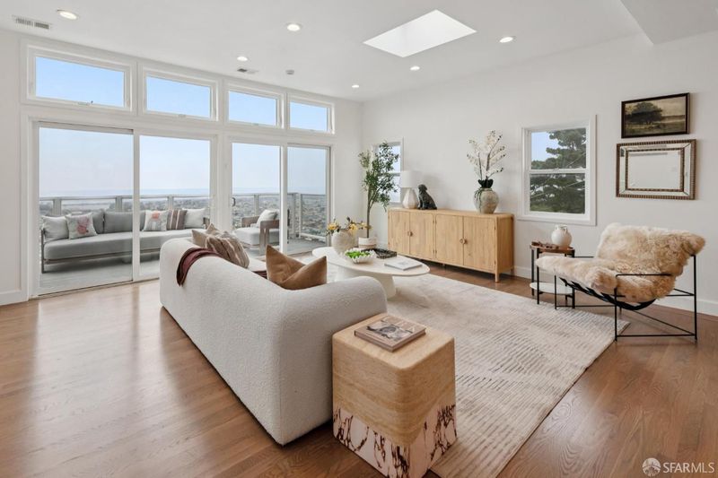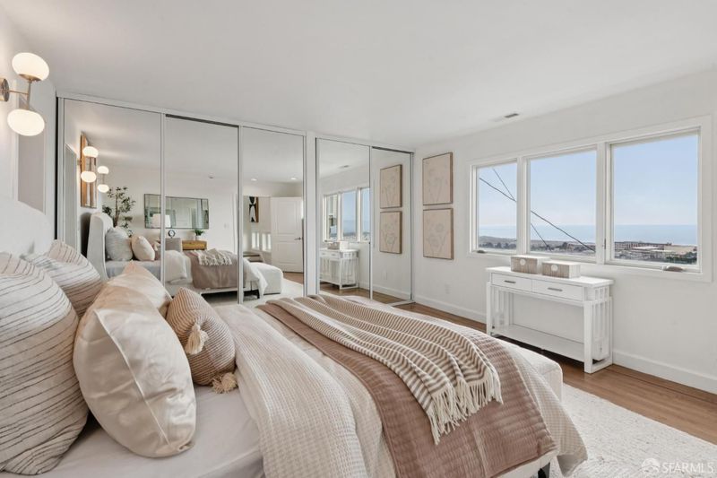 3 Bedrooms, 3 Baths. Stunning multi-level contemporary home in San Francisco's coveted Golden Gate Heights with unobstructed ocean views! Watch gorgeous sunsets each evening from every level of this contemporary home. Rebuilt and expanded in 2009, this residence features ample dual pane windows and sliding glass doors that open to expansive decks, creating seamless indoor/outdoor living. Gorgeous wood floors, multiple skylights and ample windows throughout with a great room layout on the main level, this home is ideal for modern life styles and entertaining. The lower level offers exceptional flexibility with a bonus media room and a separate family room plus full wet bar. The roomy primary suite includes a large walk-in closet and luxurious spa-like bath, complemented by a second spacious en-suite bedroom on a separate level. Additional highlights include solar power, 1+ car garage (2 small cars maybe possible), and a 4,277 sq ft lot (per public records). Prime location just one block from Muni and minutes to Safeway, Stonestown Galleria, neighborhood cafes and dining. Don't Miss!