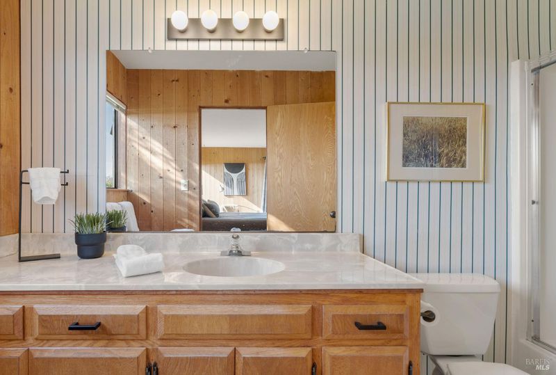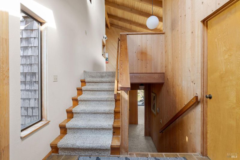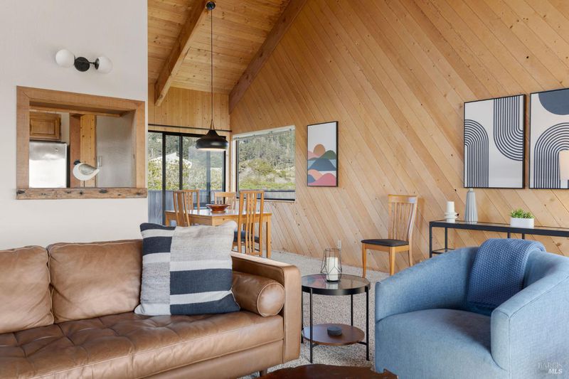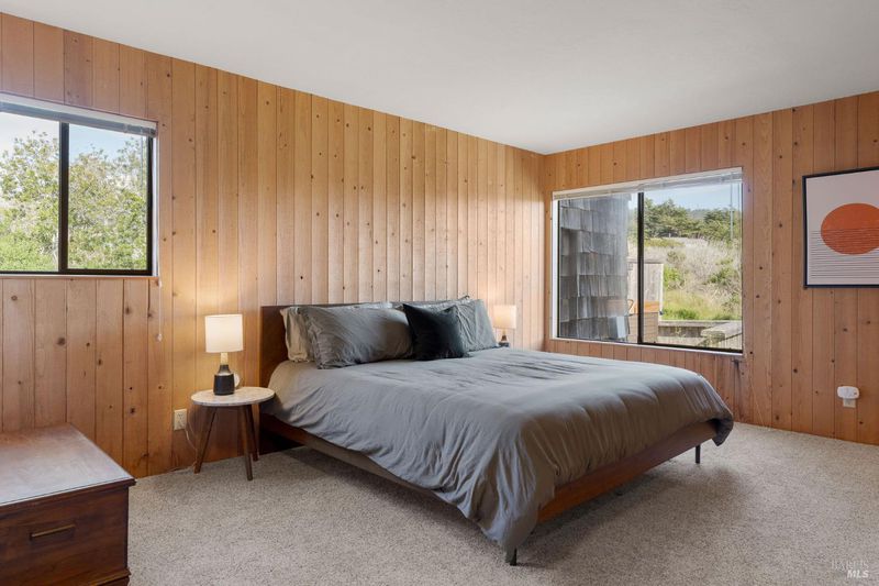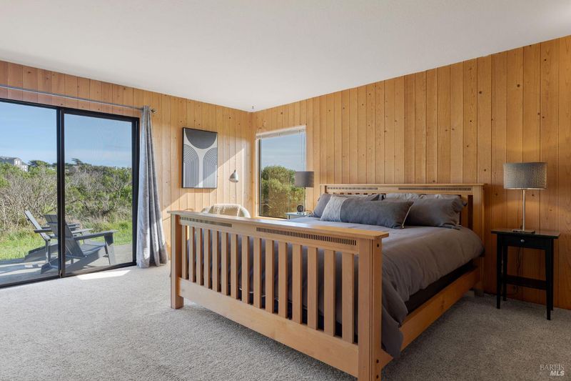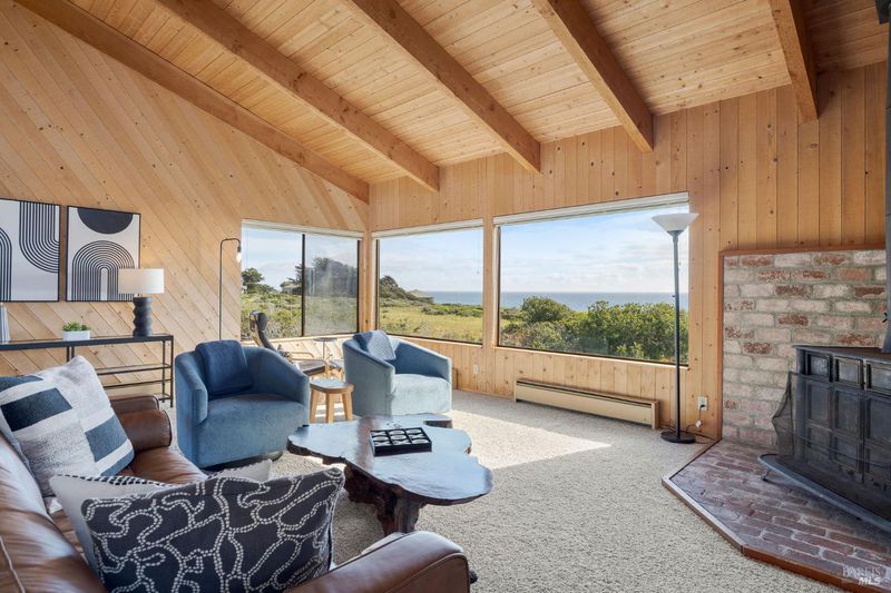 Welcome to 52 Sea Meadow, a beautifully situated two-level home in the sought-after south end of The Sea Ranch, where comfort meets coastal serenity and sweeping whitewater views. Nestled in the West Meadow, this classic 1977 shingled home offers a rare opportunity to bring your vision to life. A detached garage, sheltered lot bordering commons, and quiet cul-de-sac setting create an ideal canvas for your coastal retreat. Designed with a reverse floor plan to maximize natural light and ocean vistas, the upper level features an inviting open-concept living, dining, and kitchen area. Expansive windows frame the ever-changing seascape, while a wood-burning stove adds warmth and ambiance. Sold turnkey, the home was recently a successful vacation rental. Step out onto the upper deck perfect for morning coffee, alfresco dining, or grilling on the gas BBQ while taking in the fresh Pacific air. The lower-level hosts two spacious primary suites, each with a king bed and private bath, offering comfort and privacy. One suite opens to a sheltered patio with a generous hot tub ideal for relaxing under the renowned dark skies of Sea Ranch. Additional features include 2.5 bathrooms, a laundry room with ocean views, high-speed internet, hydro-radiant heating downstairs, and electric baseboard heating upstairs. Outdoor decks and patios on both levels provide ample space to unwind and enjoy the surroundings. Immerse yourself in the natural beauty that defines The Sea Ranch, from redwood forest hikes to meadow and bluff trails along the Pacific. With nearby access to the bluff trail, you are moments from scenic destinations like Pebble Beach, Black Point Beach, and the iconic The Sea Ranch Lodge. Whether you're soaking in the hot tub, exploring the coastline, or simply unwinding with a book and your favorite drink, 52 Sea Meadow offers a timeless setting to relax, recharge, and reconnect.