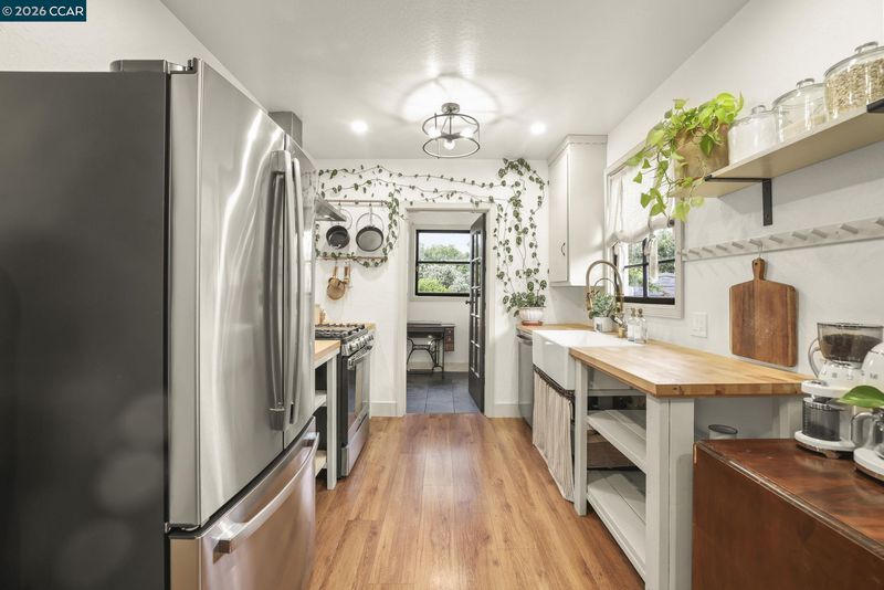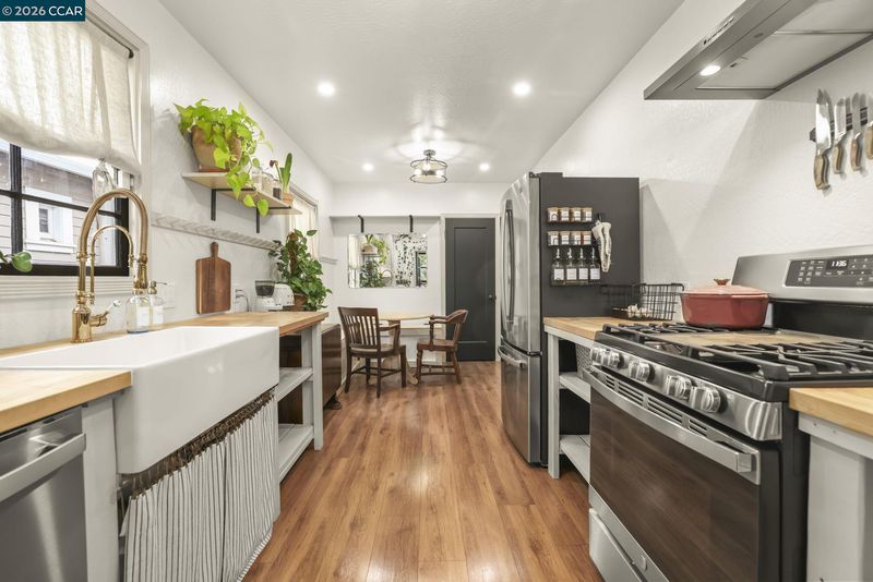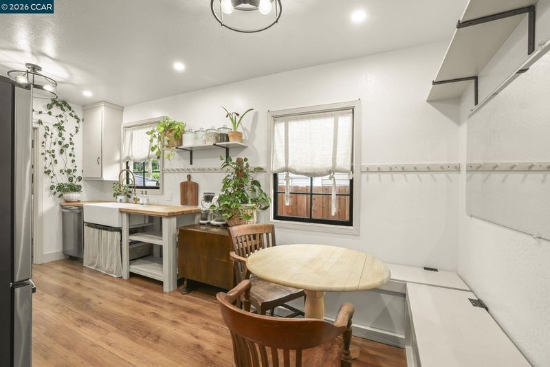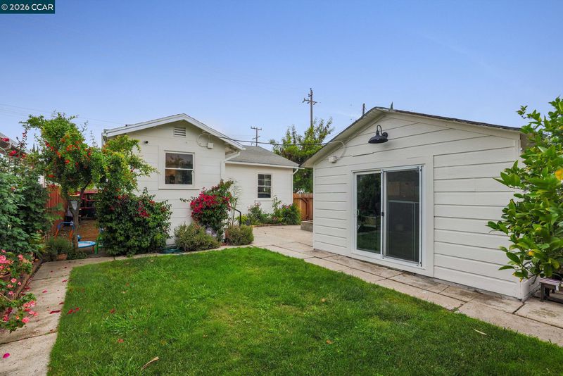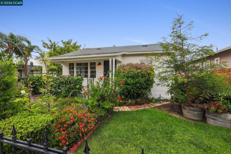 Charming 2-bedroom, 1-bath home nestled in the heart of Pittsburg! This adorable residence features beautiful hardwood floors, classic woodwork, and an updated kitchen complete with a cozy breakfast nook and gas stove. Enjoy the convenience of inside laundry and the versatility of a garage space previously used as a home office. Relax and unwind on the inviting front porch, or step into the lush backyard featuring a grassy play area, an abundance of mature flowers, and a gorgeous assortment of fruit trees—including apple, lemon, pomegranate, guava, peach, and orange—creating a vibrant and colorful landscape. The yard is fully fenced for added privacy. Situated on a corner lot with fresh exterior paint, this home is just minutes from downtown Pittsburg, local restaurants, the Marina, schools, and offers easy access to Pittsburg BART and Highway 4—making commuting a breeze.