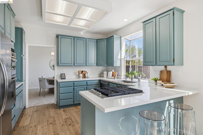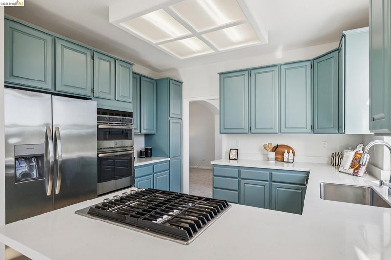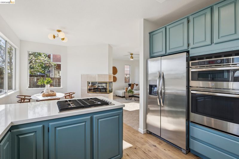 - Dishwasher, Gas Range, Plumbed For Ice Maker, Microwave, Oven, Refrigerator, Breakfast Bar, Counter - Solid Surface, Eat-in Kitchen, Disposal, Gas Range/Cooktop, Ice Maker Hookup, Oven Built-in, Updated Kitchen
