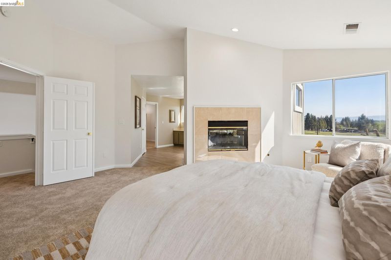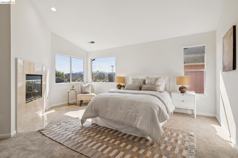 Set on a quiet court in one of Martinez’s established hillside neighborhoods, this spacious 4-bedroom, 2.5-bath home offers over 2,400* sq ft of flexible living with a south-facing patio, Mt. Diablo views, and central AC. Refreshed with full interior and exterior paint, the home feels clean and move-in ready while offering room to personalize over time. A grand entryway opens to soaring ceilings that create an immediate sense of volume and natural light. Multiple living areas provide space for both gathering and everyday comfort, while the traditional floor plan offers a natural flow between rooms. The eat-in kitchen anchors the home and connects to the family room with a shared gas two-way fireplace, creating a warm and functional central living space. An oversized two-car garage adds everyday convenience. Upstairs, four well-sized bedrooms offer versatility. The primary suite features a generous walk-in closet and a well-appointed bath, complete with a gas two-way fireplace that adds warmth and character. Minutes from downtown Martinez, enjoy local restaurants, coffee shops, parks, and shoreline trails. HWY 4 access is just a block away, connecting you to Pleasant Hill, Walnut Creek, and beyond. A rare combination of space, comfort, and location, ready for its next chapter.