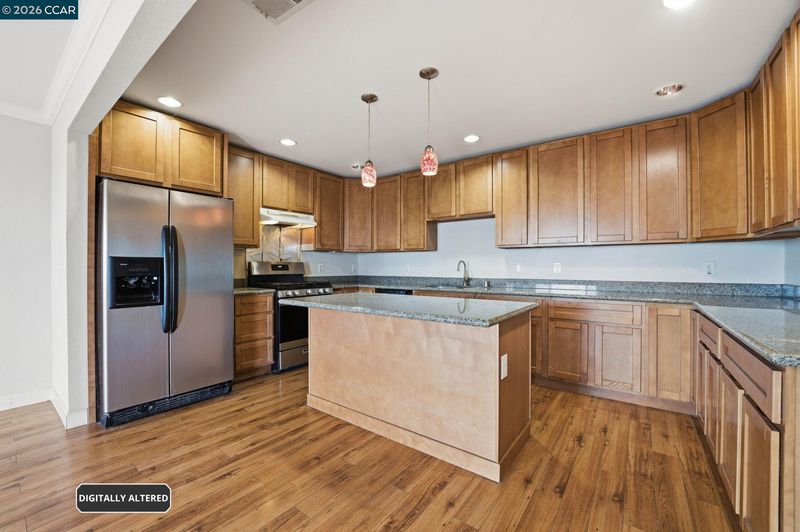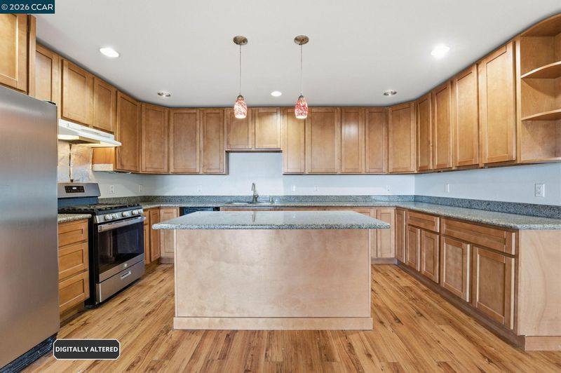 - Dishwasher, Gas Range, Refrigerator, Dryer, Washer, Stone Counters, Gas Range/Cooktop, Kitchen Island