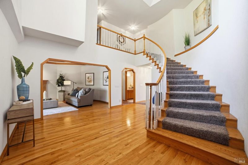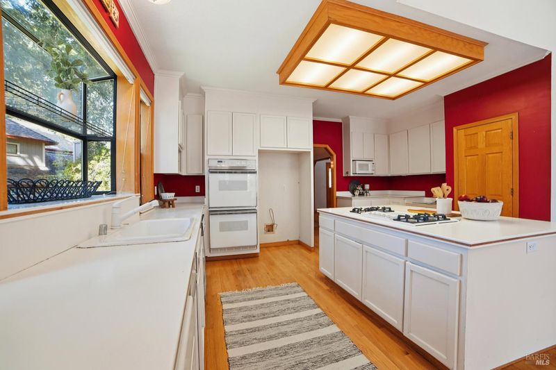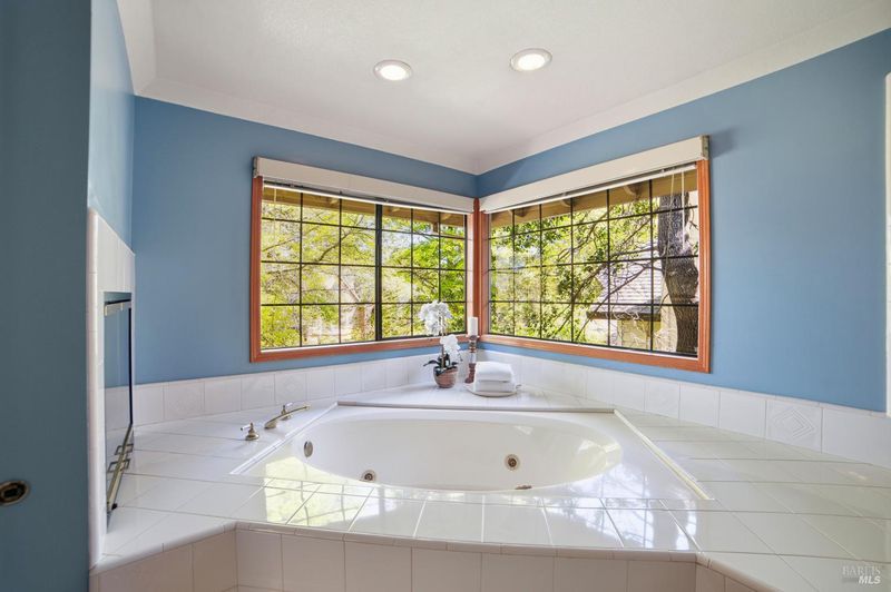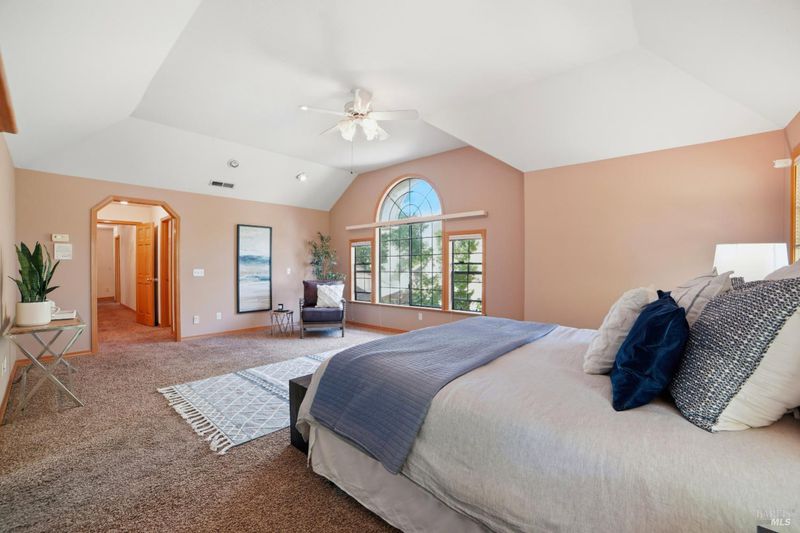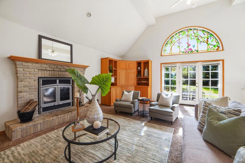 Experience elegant living in this desirable Bennett Valley residence, where timeless design meets everyday comfort. Offering 4,300+/-sqft of living space, this impressive residence features five bedrooms and four bathrooms ( one of the bedrooms with ensuite bathroom on main level ) set on a generous .44+/-acre lot. A welcoming formal entry introduces elegant interiors, including a refined dining room with custom built-ins and a stylish living room highlighted by expansive windows, a warm fireplace, and thoughtfully integrated cabinetry. The main living area is designed for both relaxation and entertaining, showcasing cathedral ceilings, a fireplace, wet bar and french doors that open to a serene backyard. The well-appointed kitchen blends form and function, featuring a sunny breakfast area, center island, pantry closet, and ample cabinetry. The spacious primary suite offers a peaceful retreat, complete with its own fireplace and a luxurious en-suite bath with soaking tub, dual vanities, separate shower, extensive cabinetry, and a sizeable walk-in closet. Surrounded by mature landscaping, the outdoor space provides a private and picturesque backdrop. Additional features include air conditioning, owned solar, an indoor laundry room with sink and plenty of cabinetry, and a three-car garage. A rare offering in beautiful Bennett Valley.