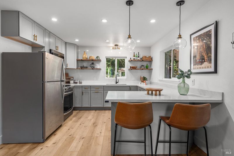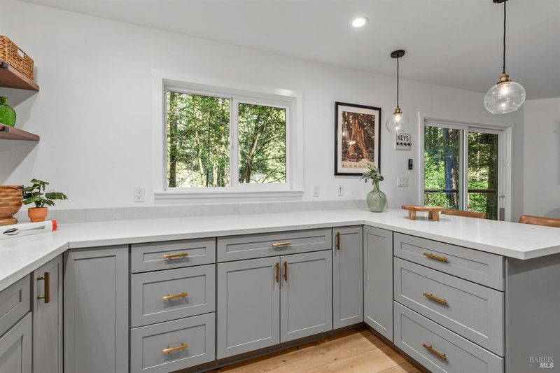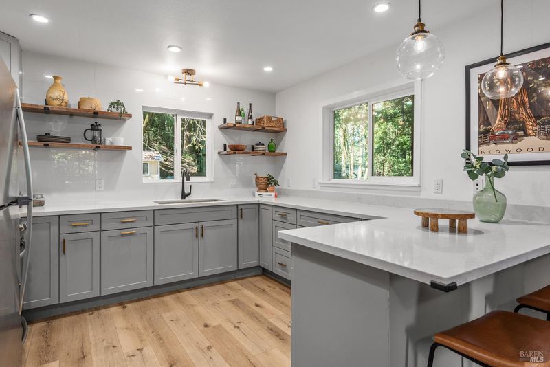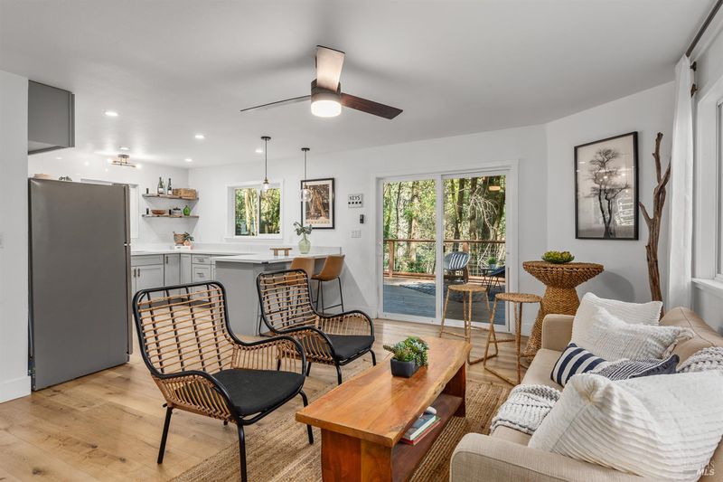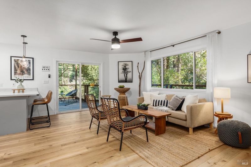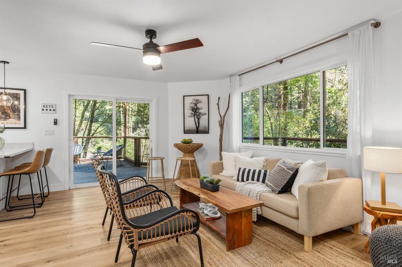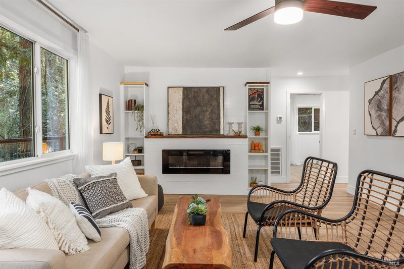 In an available STR zone. Nestled high above Dutch Bill Creek in Monte Rio, this updated home offers privacy, modern comfort, and a serene wooded setting. Refreshed within the last three years, it features vinyl plank flooring, improved lighting, and a cute fireplace that adds warmth and charm. The functional layout opens to a huge deck overlooking the trees, creating an ideal space for relaxing or entertaining. Set on a usable 0.65-acre lot, the property provides room for gardening, a storage shed, or future outdoor projects. Surrounded by nature yet close to wineries, trails, and the Russian River, this peaceful retreat blends convenience with a private, elevated feel. Move-in ready and perfectly suited as a full-time residence or weekend getaway in the heart of Sonoma County.