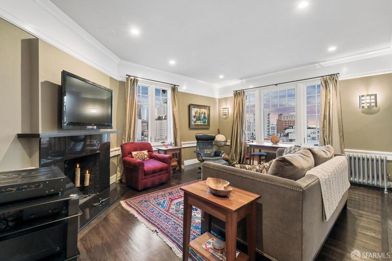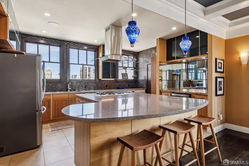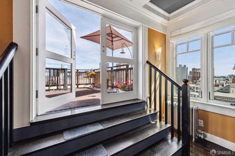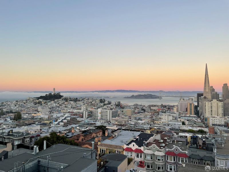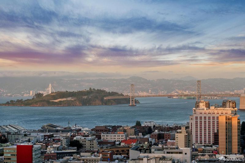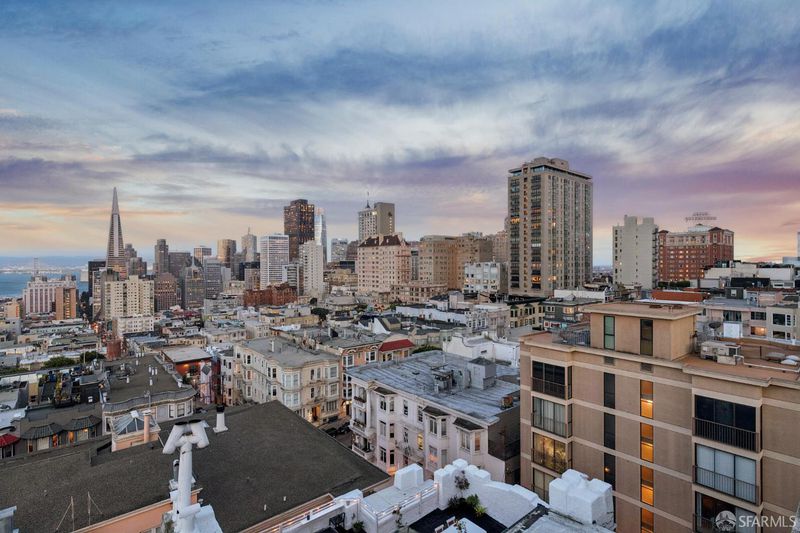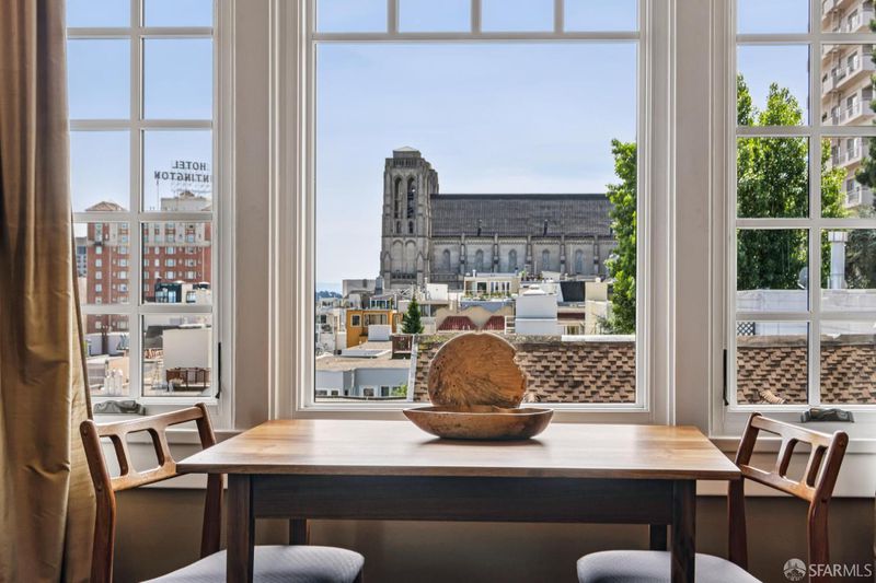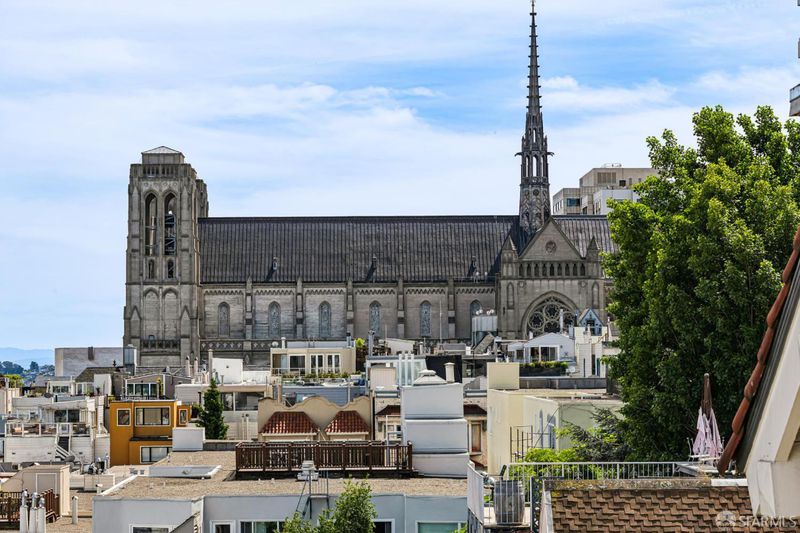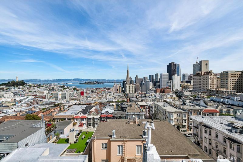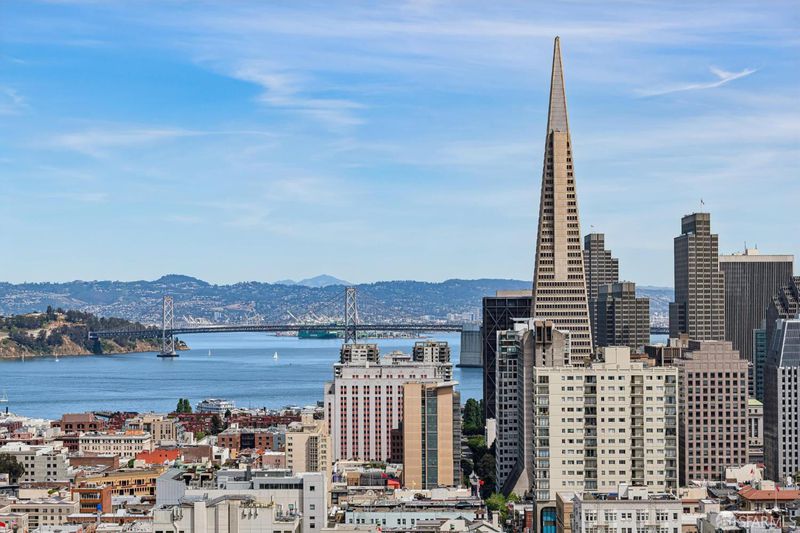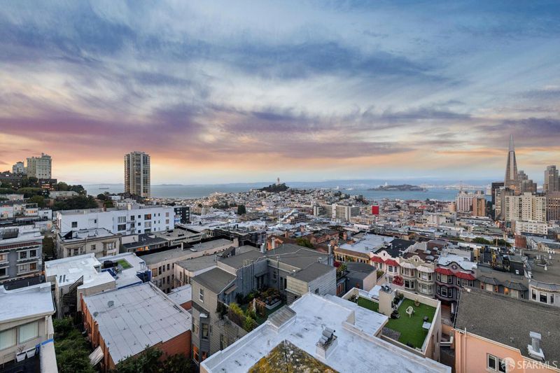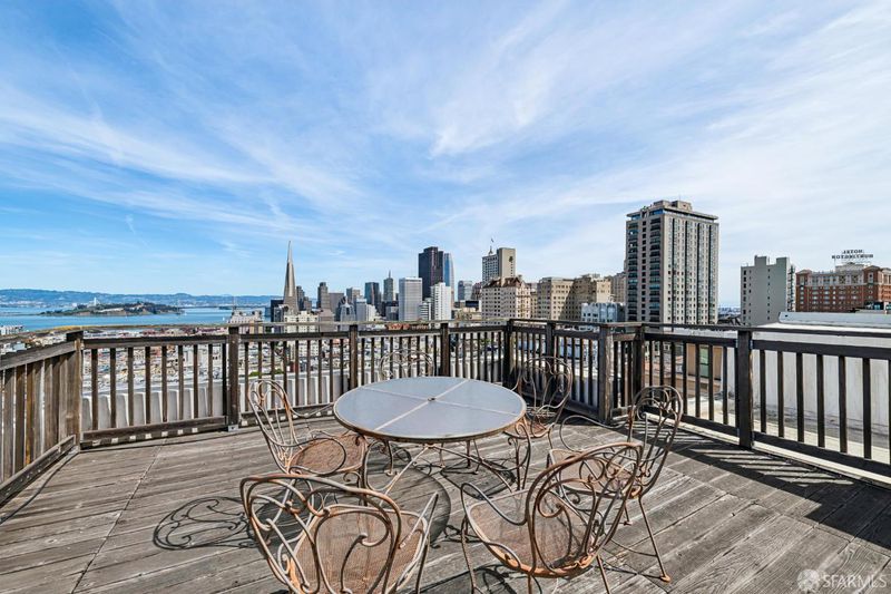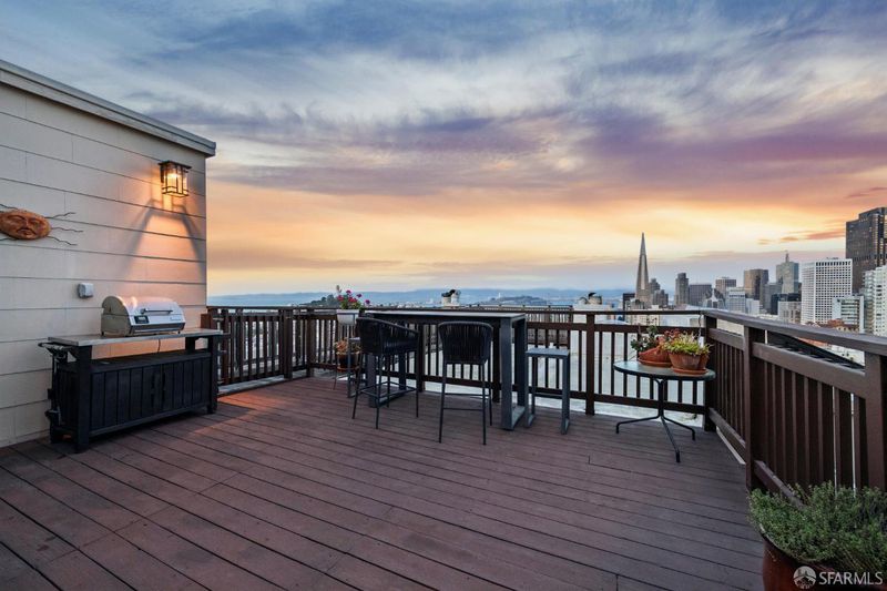 Renovated Nob Hill top floor condo with landmark San Francisco views! This exceptional penthouse condo offers a rare, beautifully renovated, view-oriented home in one of Nob Hill's most desirable locations, in a classic Spanish Mediterranean-style walk-up building. The condo features sweeping panoramic views encompassing the Bay, downtown SF, Transamerica Pyramid, Bay Bridge, Coit Tower, and Grace Cathedral, providing a dramatic and ever-changing backdrop from the main living spaces and private deck. The layout includes three bedrooms and two full baths, complemented by a well-appointed kitchen featuring quartz counters, a center island with dining, and premium appliances, along with a custom bar and wine refrigerator. The kitchen is open to the dining area and its incredible view deck. The spacious living room is anchored by a black granite wood-burning fireplace and oriented to capture the views. Interior finishes include custom lighting, updated plumbing, electrical, and data infrastructure, and a refined bath design with a soaking tub, Grohe fixtures, and Italian tile. Additional features include in-unit laundry, dedicated storage, and the large deeded deck that extends the living space outdoors and showcases stunning views. In addition, the building has a shared roof deck with iconic panoramic views. Leased parking nearby.