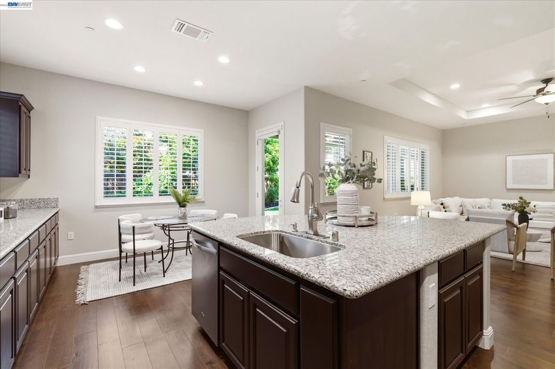 Open Sunday from 1p-4p. Welcome to 101 Gridley Court, ideally located in the sought-after Villagio neighborhood, just a short stroll to the neighborhood park, elementary school, aquatic complex, and senior activity center. Built by Discovery Homes, this beautifully maintained single-story Belice model offers 4 bedrooms and 3 bathrooms with a thoughtfully designed layout. The home showcases beech cabinetry with a rich sienna stain throughout, complemented by recessed lighting, ceiling fans, and an upgraded Whirlpool appliance package featuring a convection oven, built-in microwave, and gas cooktop. Elegant upgrades include custom soft white shutters, an upgraded shower enclosure, engineered wood flooring, and Smokey Pearl slab granite. Fresh interior paint and new carpet complete the home, giving it a crisp, move-in ready feel.